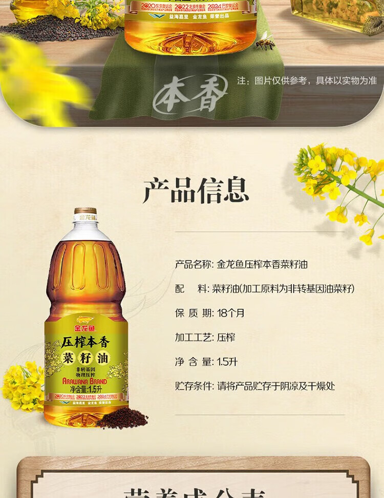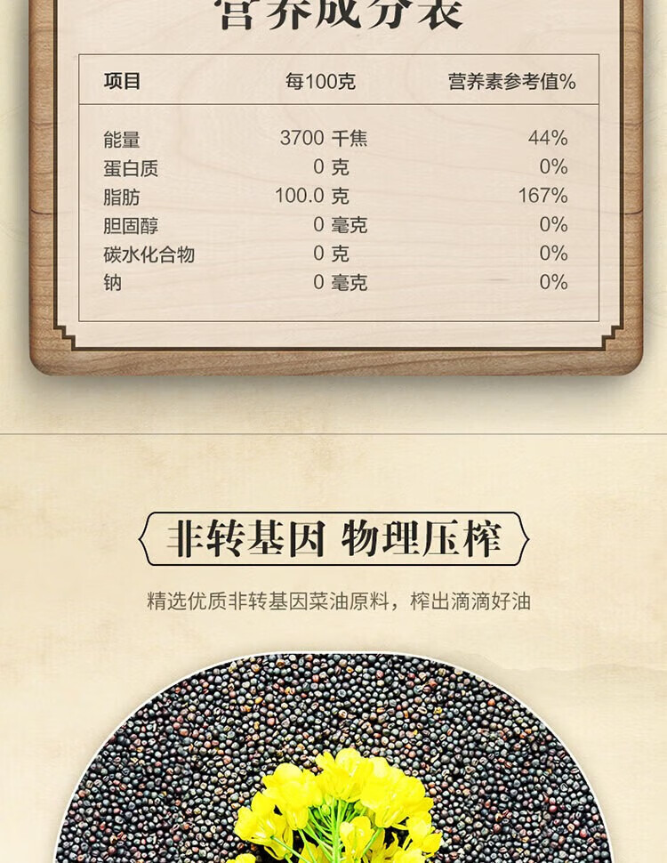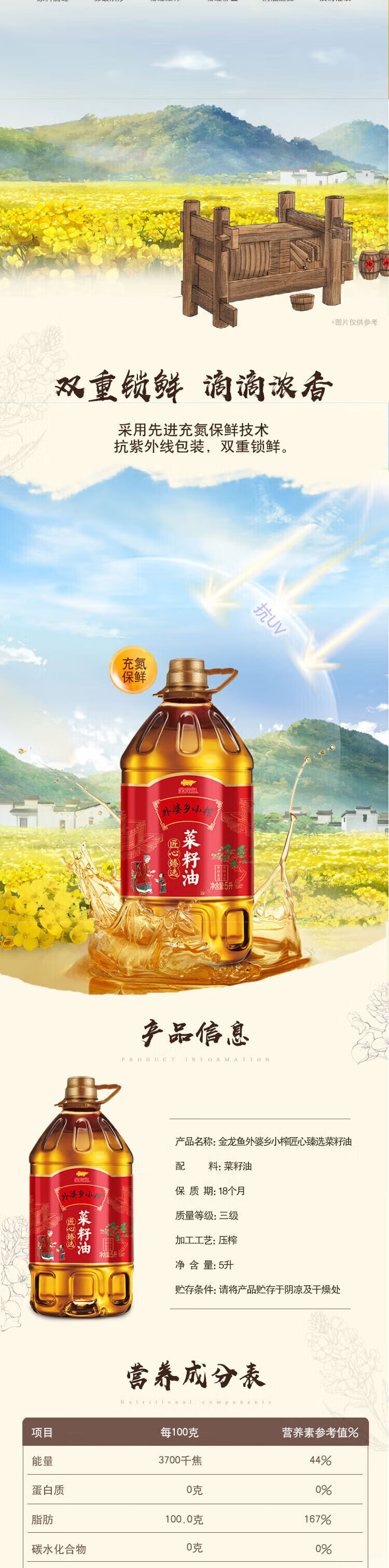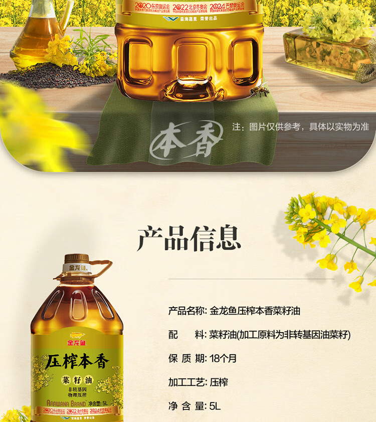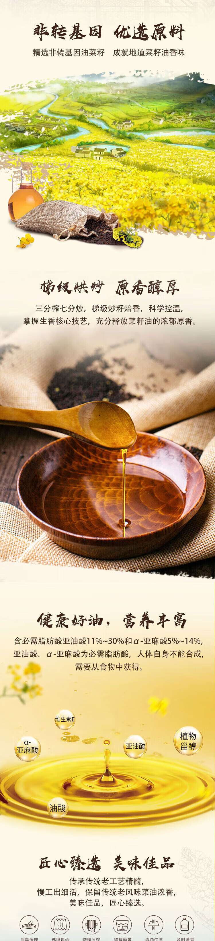 代发金龙鱼菜籽油 低芥酸原香菜籽油5L
