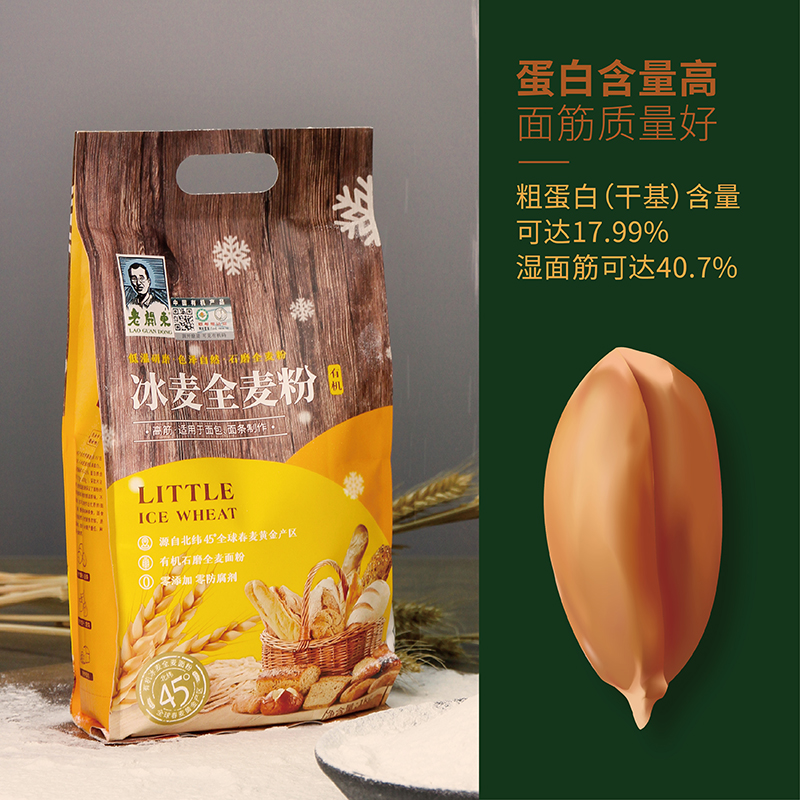 代发老关东有机石磨冰麦全麦面粉1kg