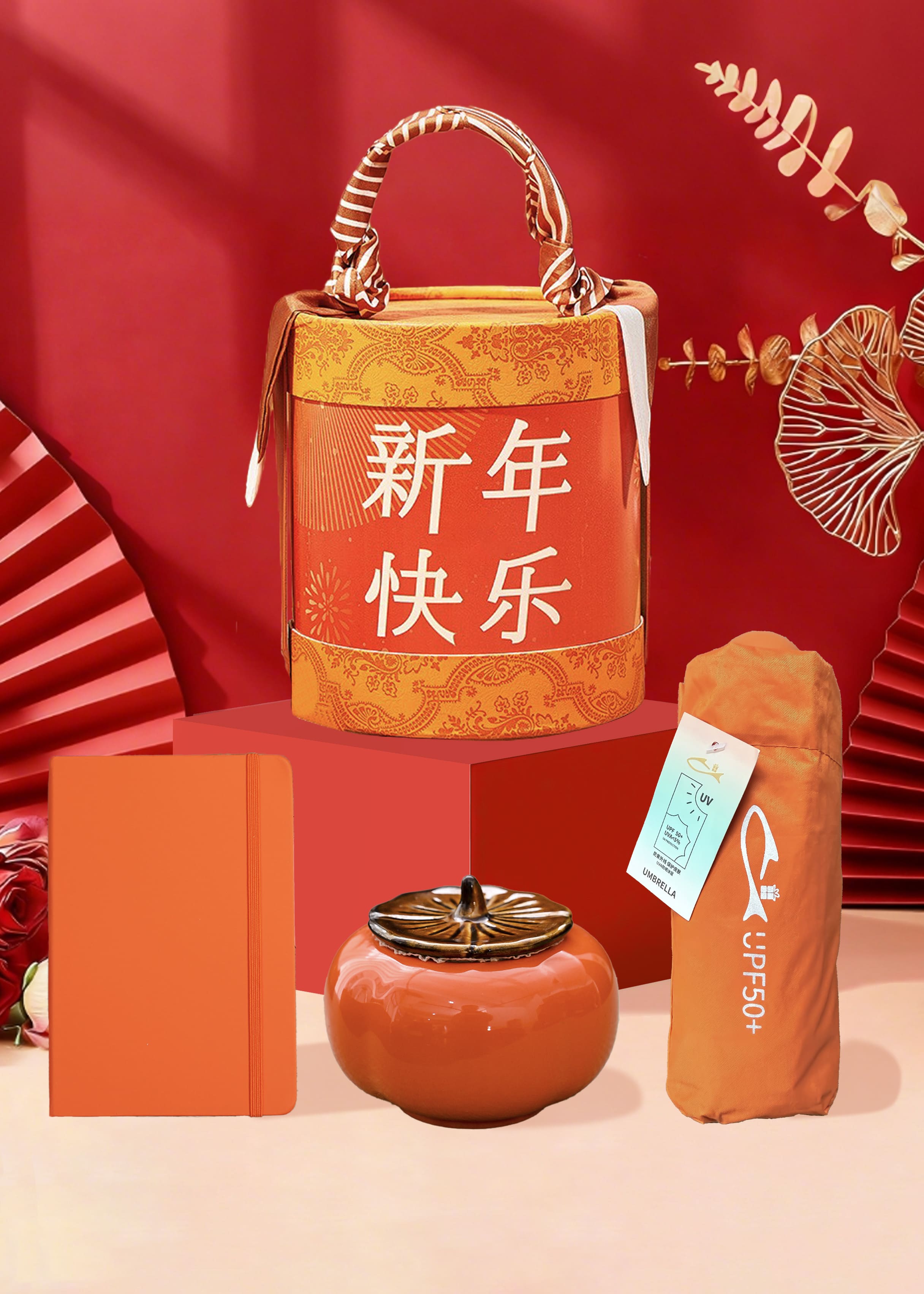 源头渝情渝礼新年抱抱桶 新年礼包 节日礼品春节礼盒礼盒套装橙色