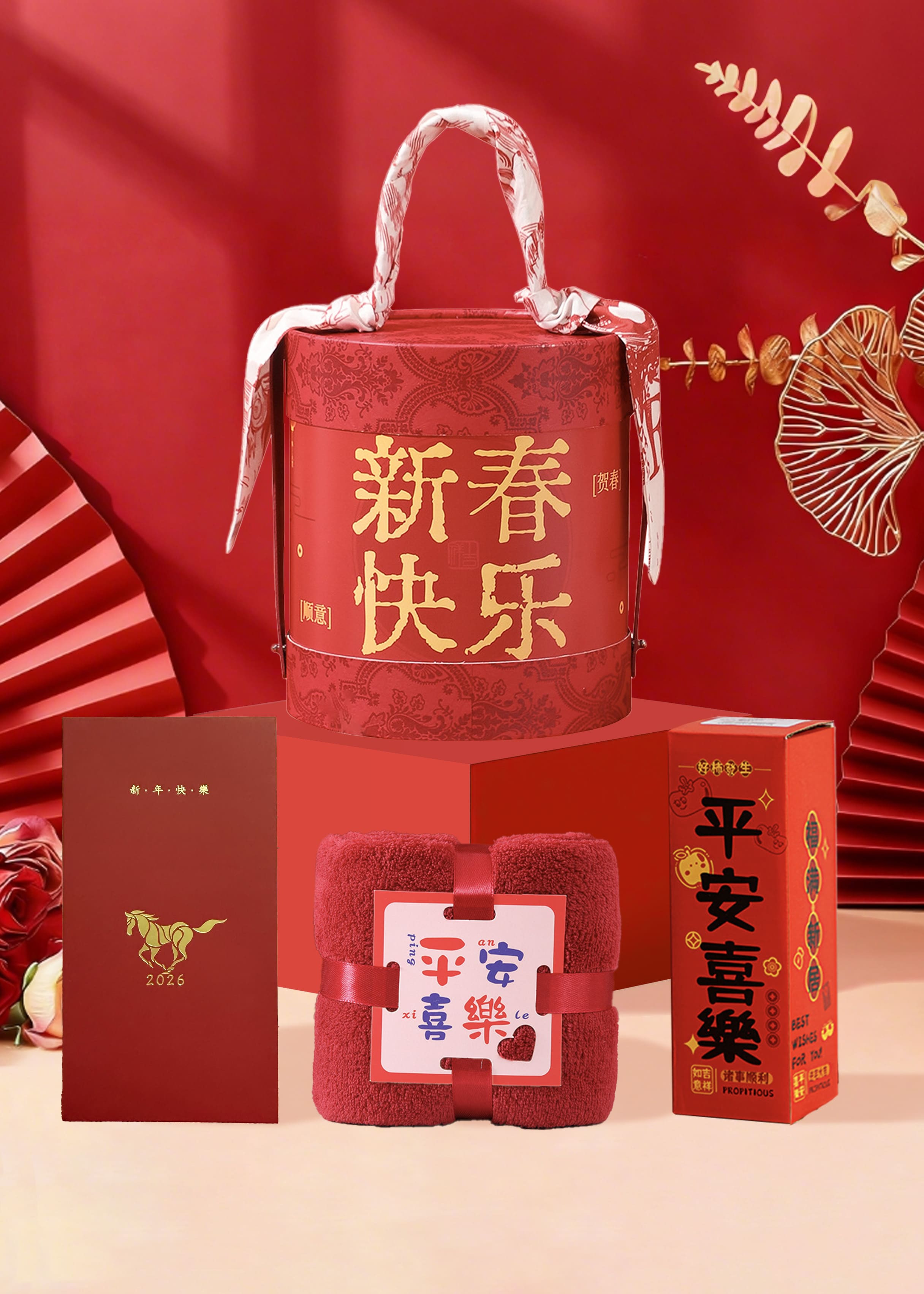 源头渝情渝礼新年抱抱桶 新年礼包 节日礼品春节礼盒礼盒套装红色