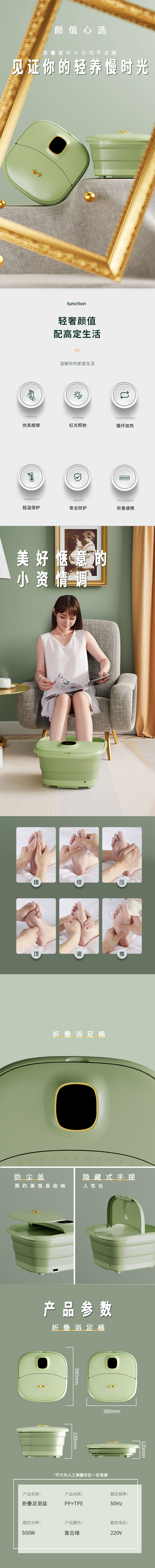 代发上亨折叠足浴盆复古绿SHZH-035