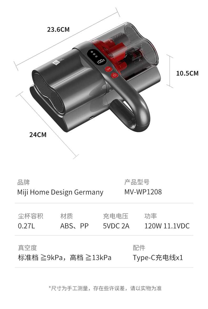 代发米技生活 无线UV除螨仪(除螨吸尘器)MV-WP1208