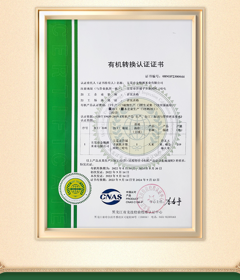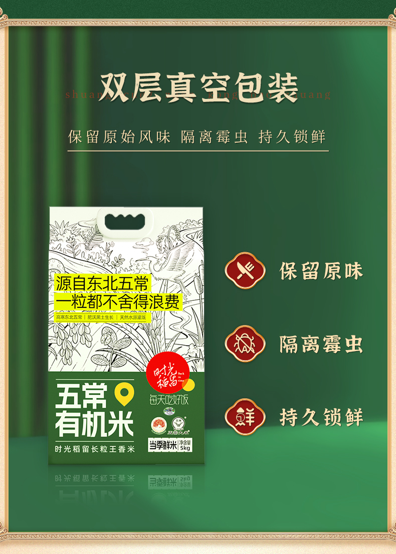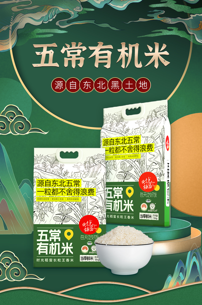 代发时光稻留 五常有机米10斤/袋 双层真空包装