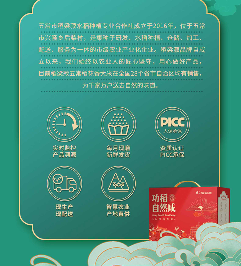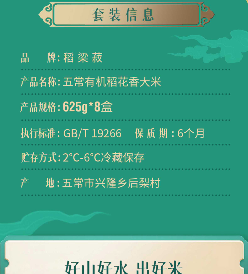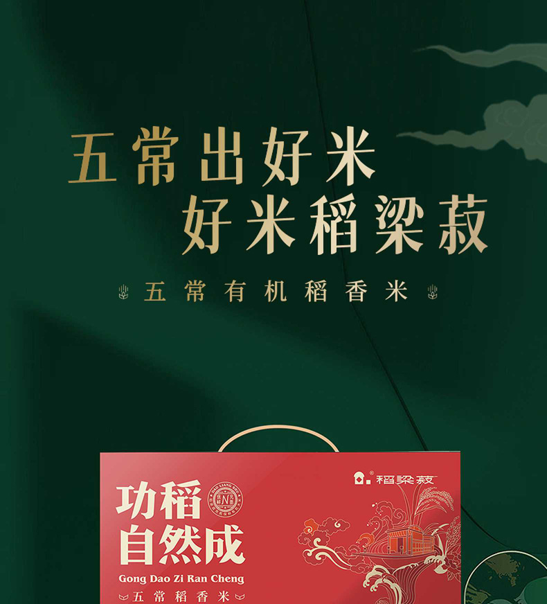 荐代发稻梁菽 五常有机稻花香大米礼盒装 功稻自然成款5kg