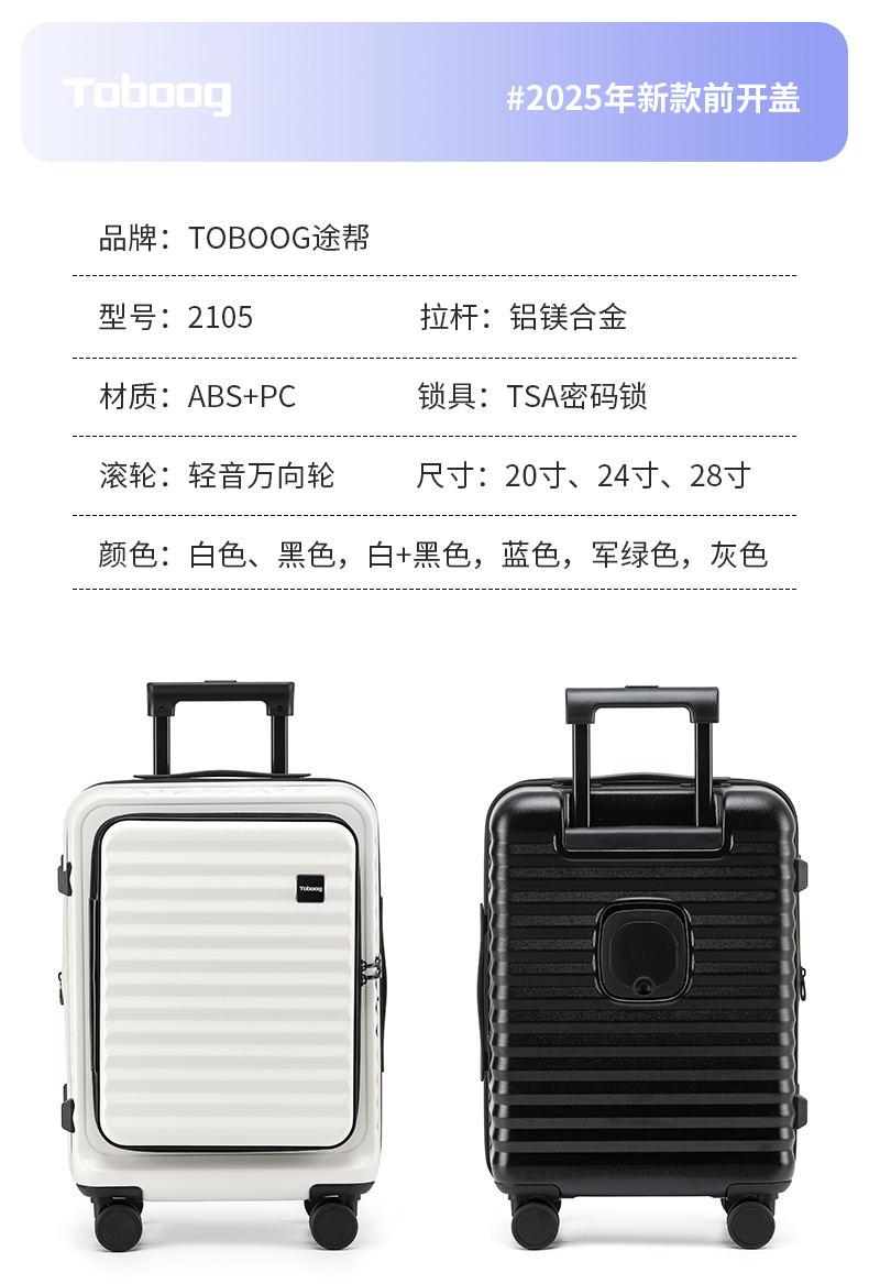 代发途帮(TOBOOG)商务前开密码登机箱2105 24寸
