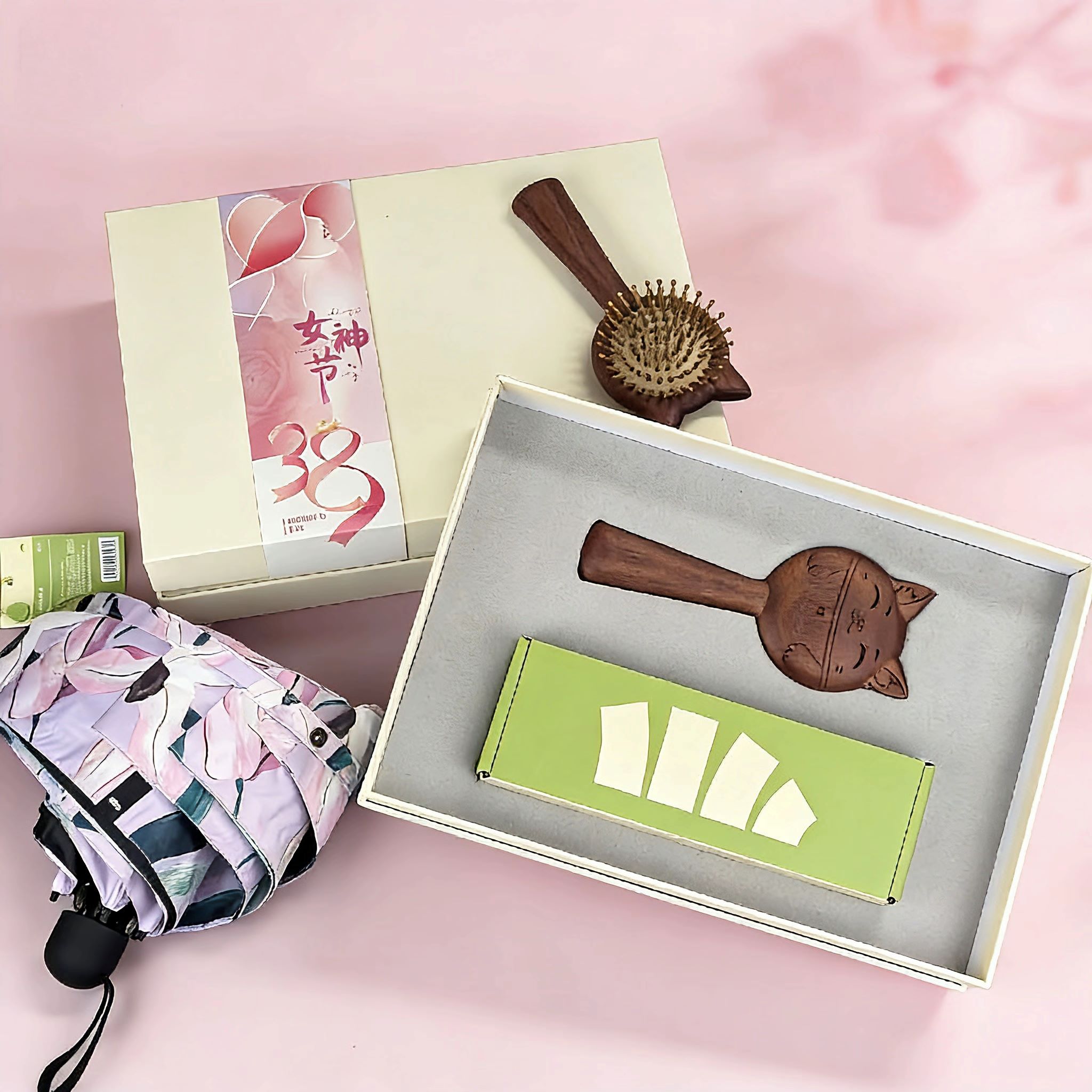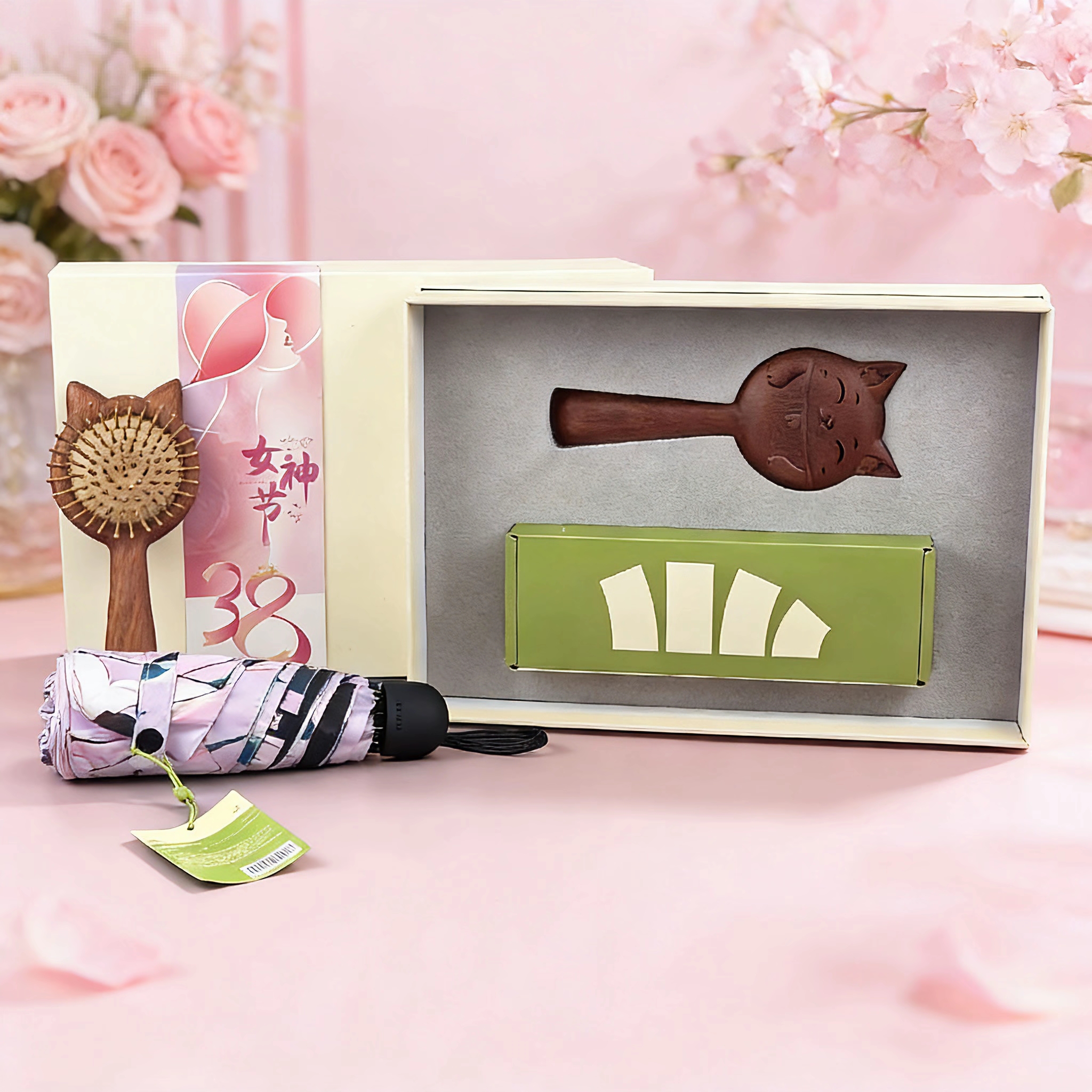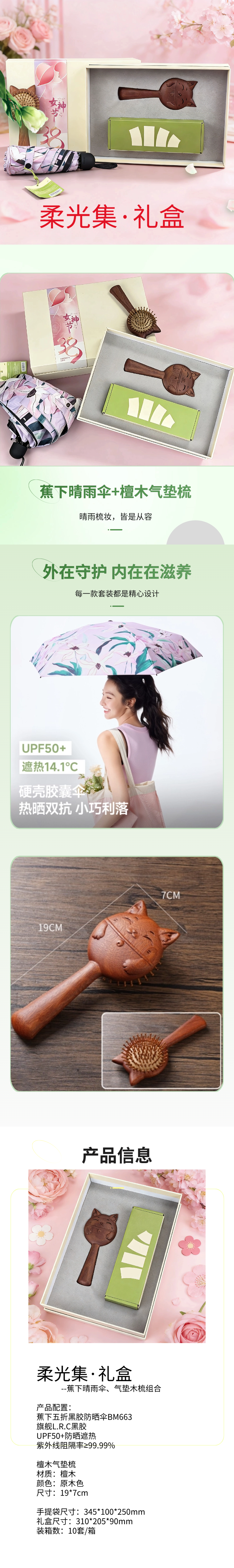 源头福礼掌柜三八女神节柔光集蕉下防晒伞檀木气垫梳礼盒组合