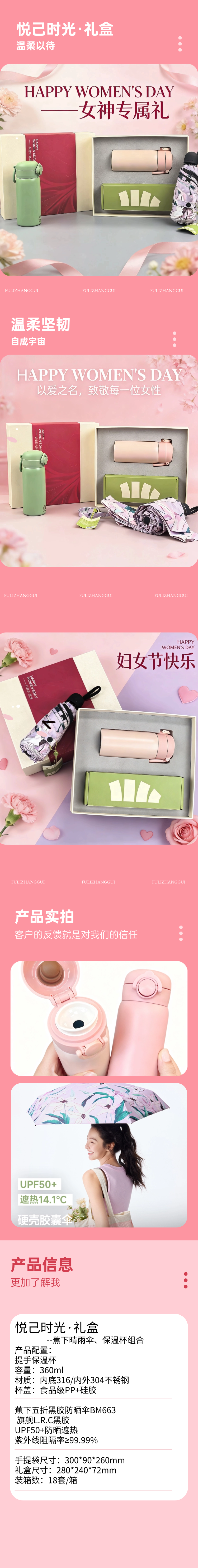 源头福礼掌柜三八女神节悦己时光蕉下防晒伞提手保温杯礼盒组合