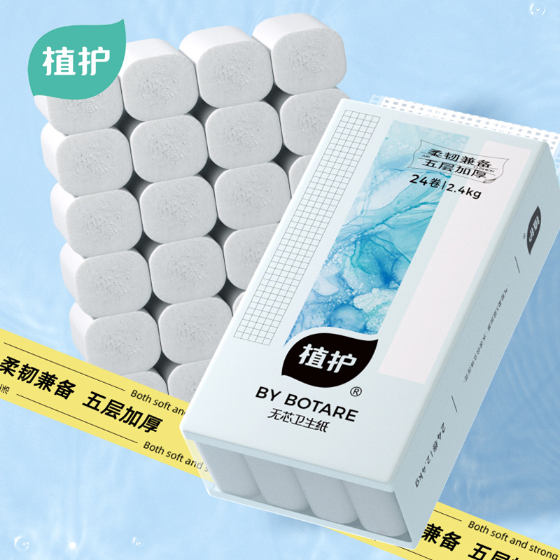 荐代发植护 气垫无芯卫生纸(碎冰蓝系列)115*120/5层 100g 24卷*1提ZH408737*1