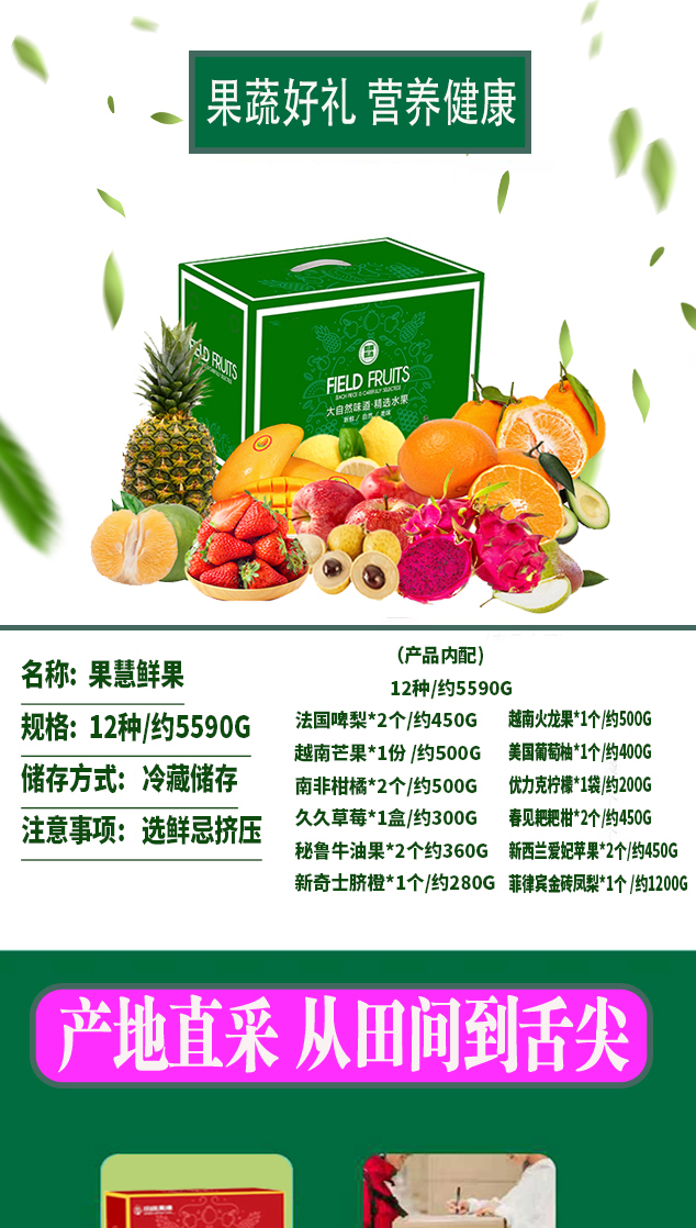 代发田蔬果缘-果慧鲜果12种/约5590g(包装随机发货)