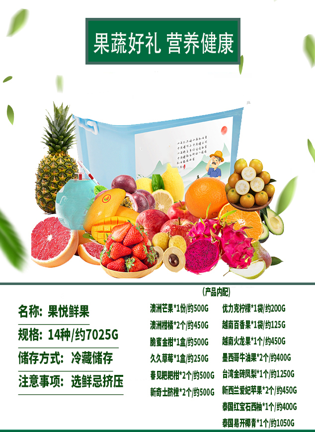 代发田蔬果缘-果悦鲜果14种/约7025g(包装随机发货)