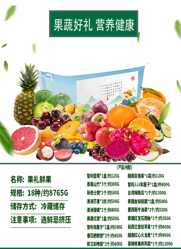 代发田蔬果缘-果礼鲜果18种/约8765g(包装随机发货)