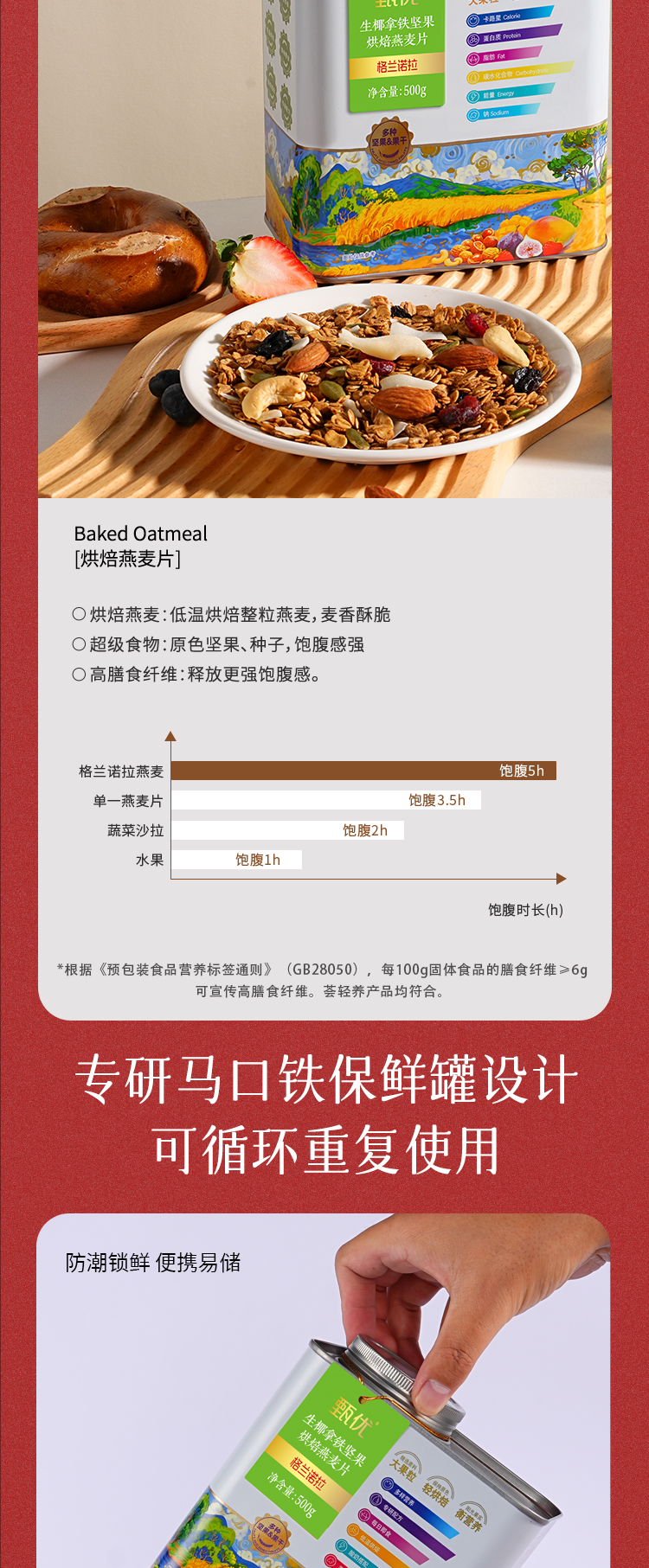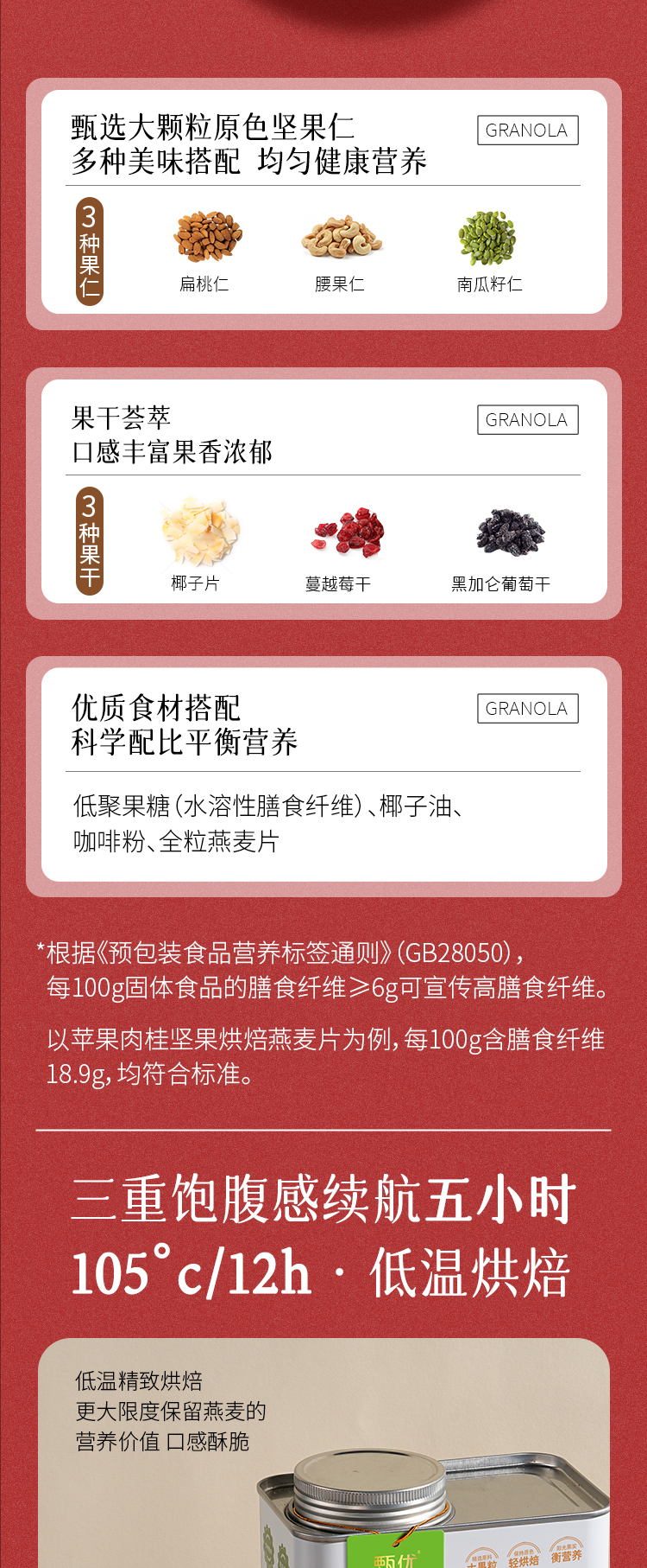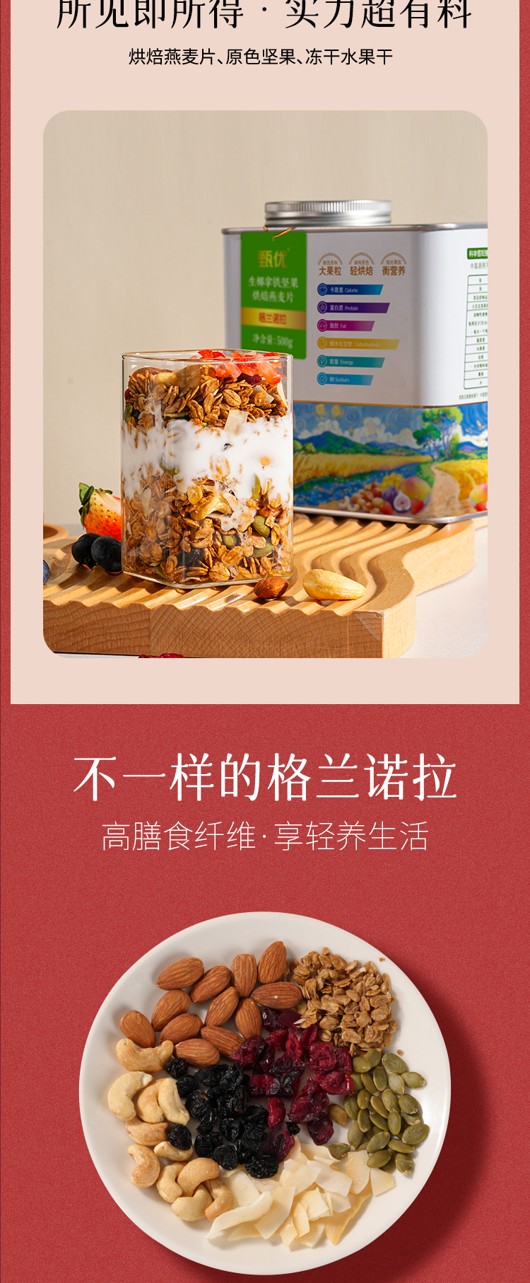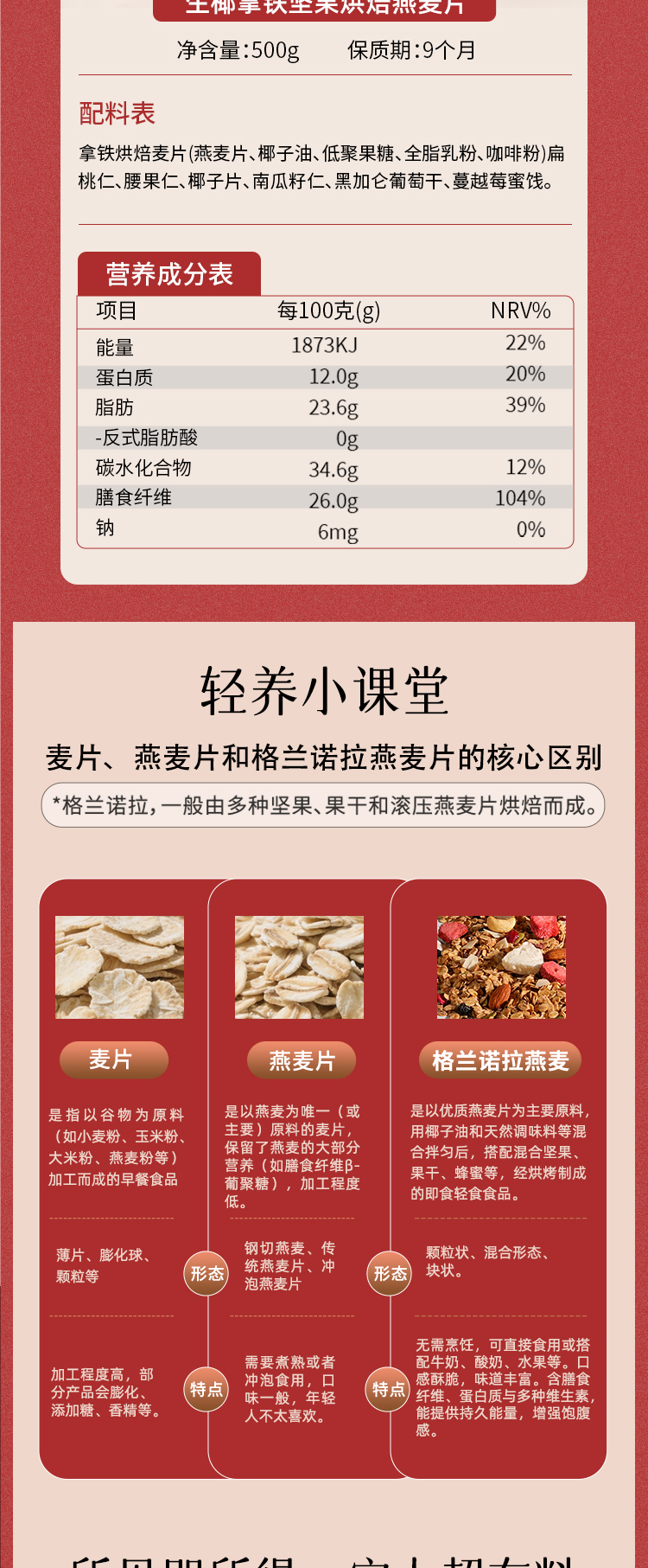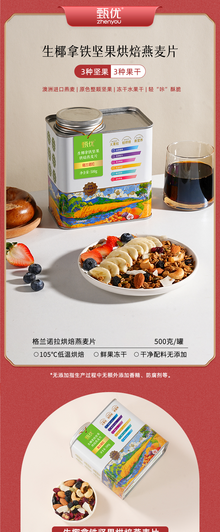 代发甄优格兰诺拉生椰拿铁 坚果烘焙燕麦片500g