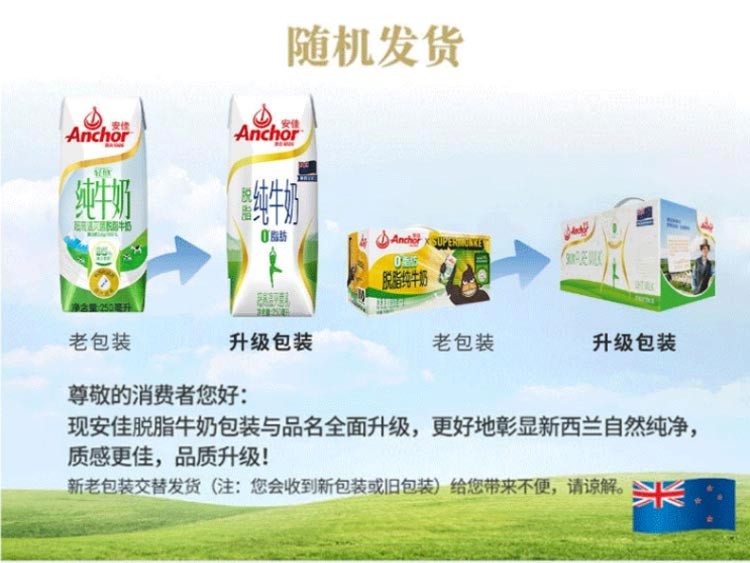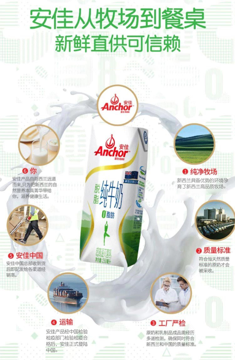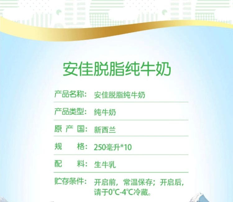 代发安佳 脱脂纯牛奶 礼盒装 250ml*10盒 新西兰进口