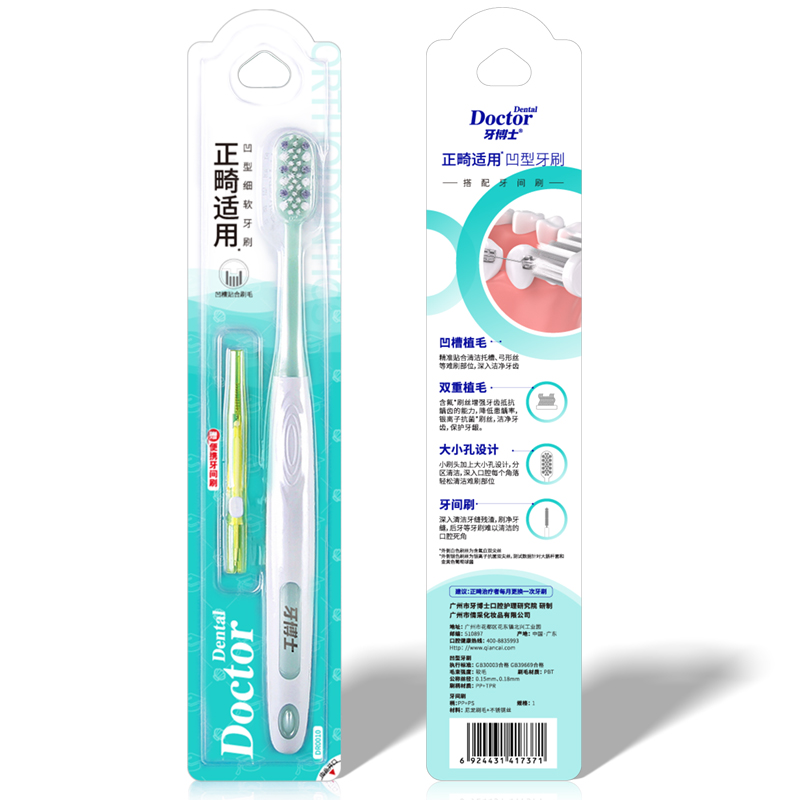 荐代发牙博士正畸专用凹形软毛牙刷护龈矫正牙齿牙套小刷头1套