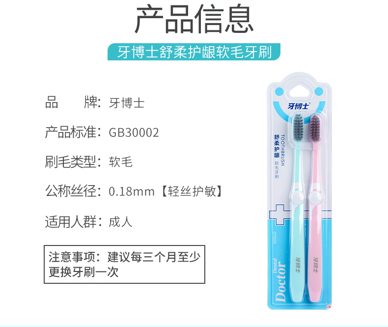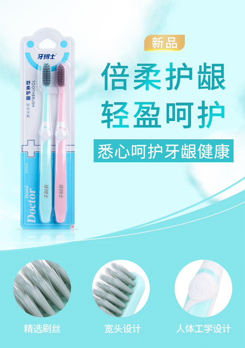 荐代发牙博士舒柔护龈软毛牙刷2支装DT8202