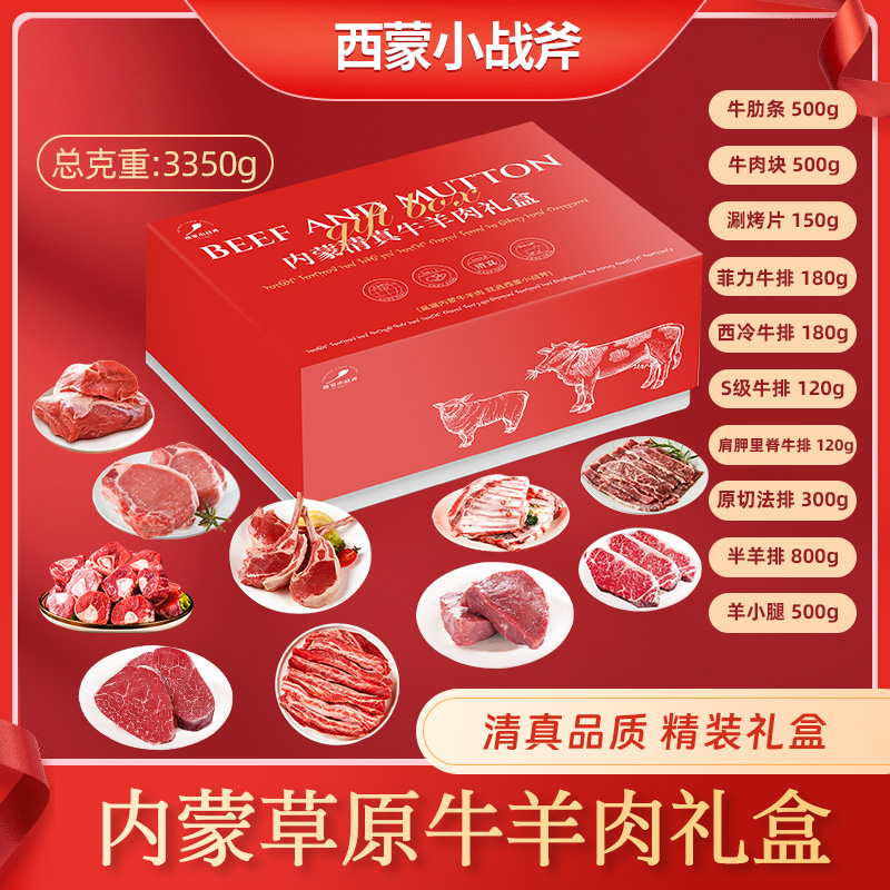 源头西蒙小战斧【牛羊献瑞】内蒙草原牛羊肉礼盒-899型