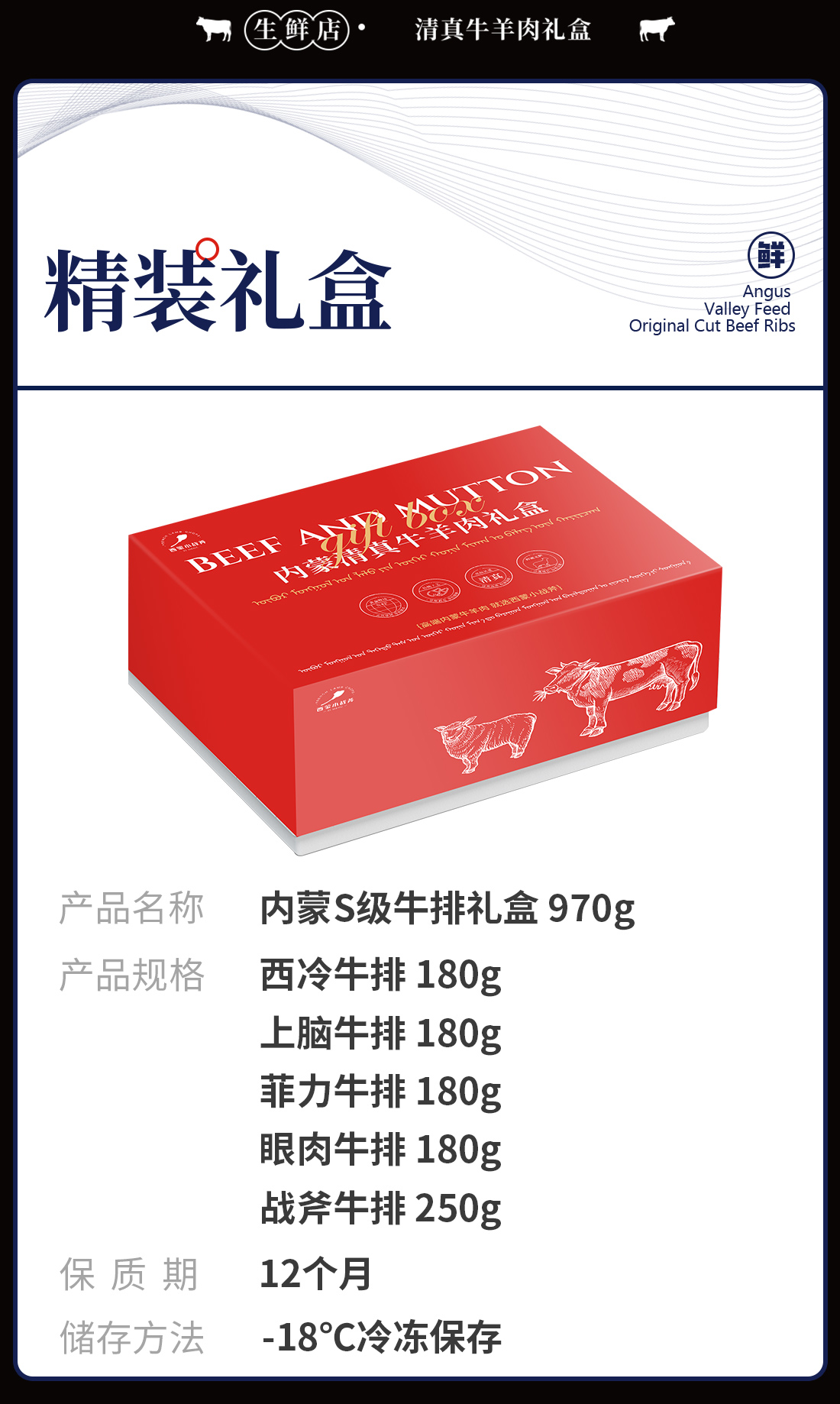 源头西蒙小战斧内蒙草原 牛排礼盒-399型