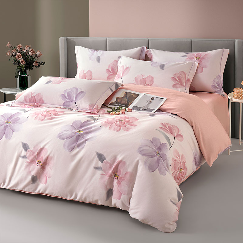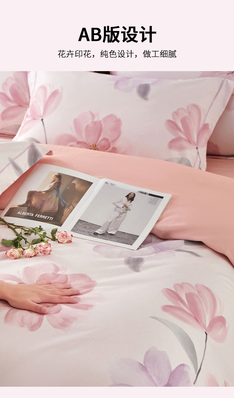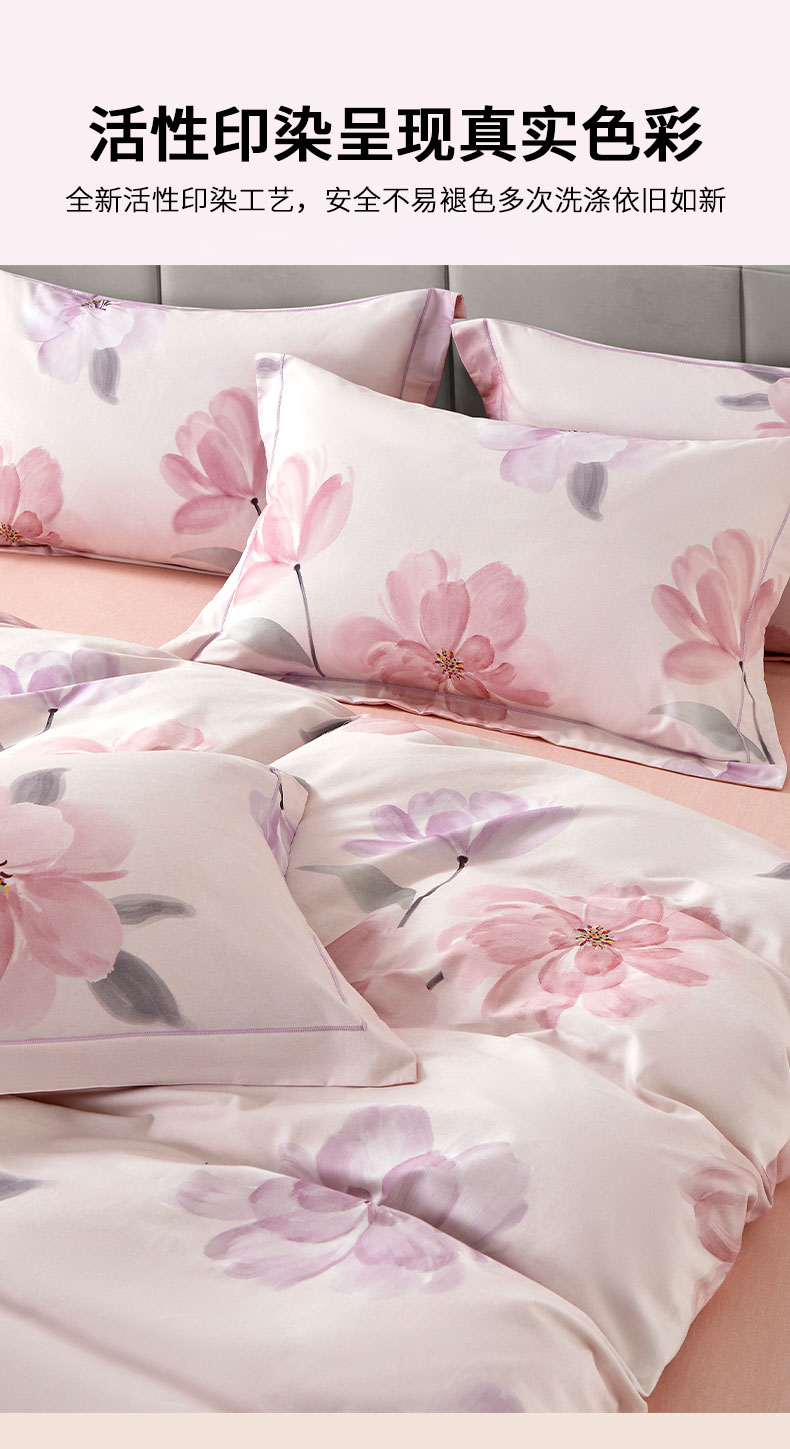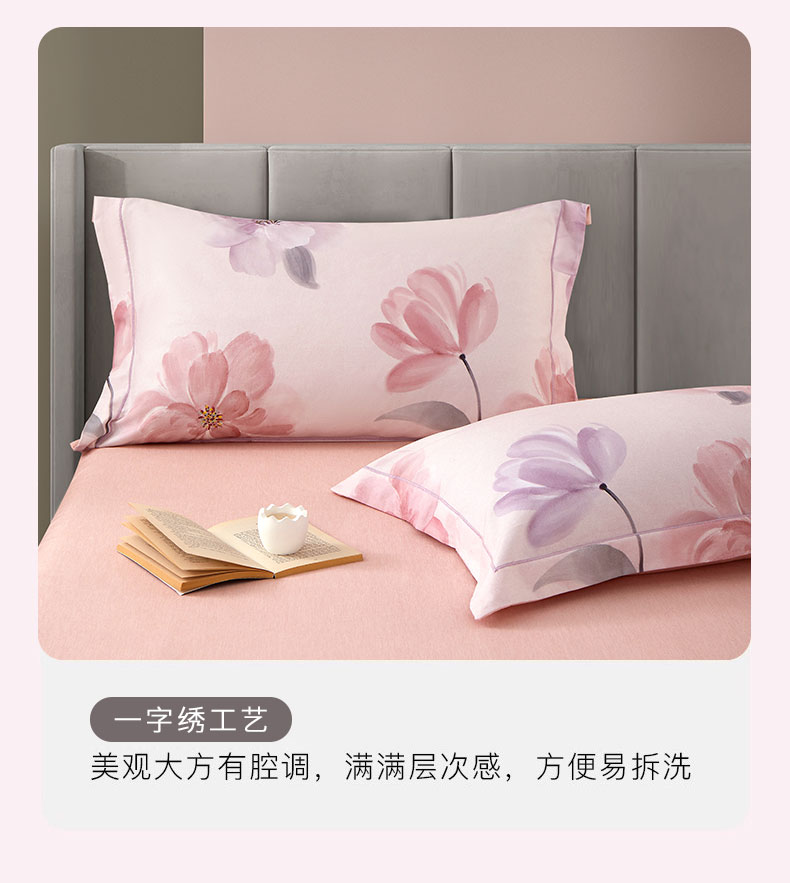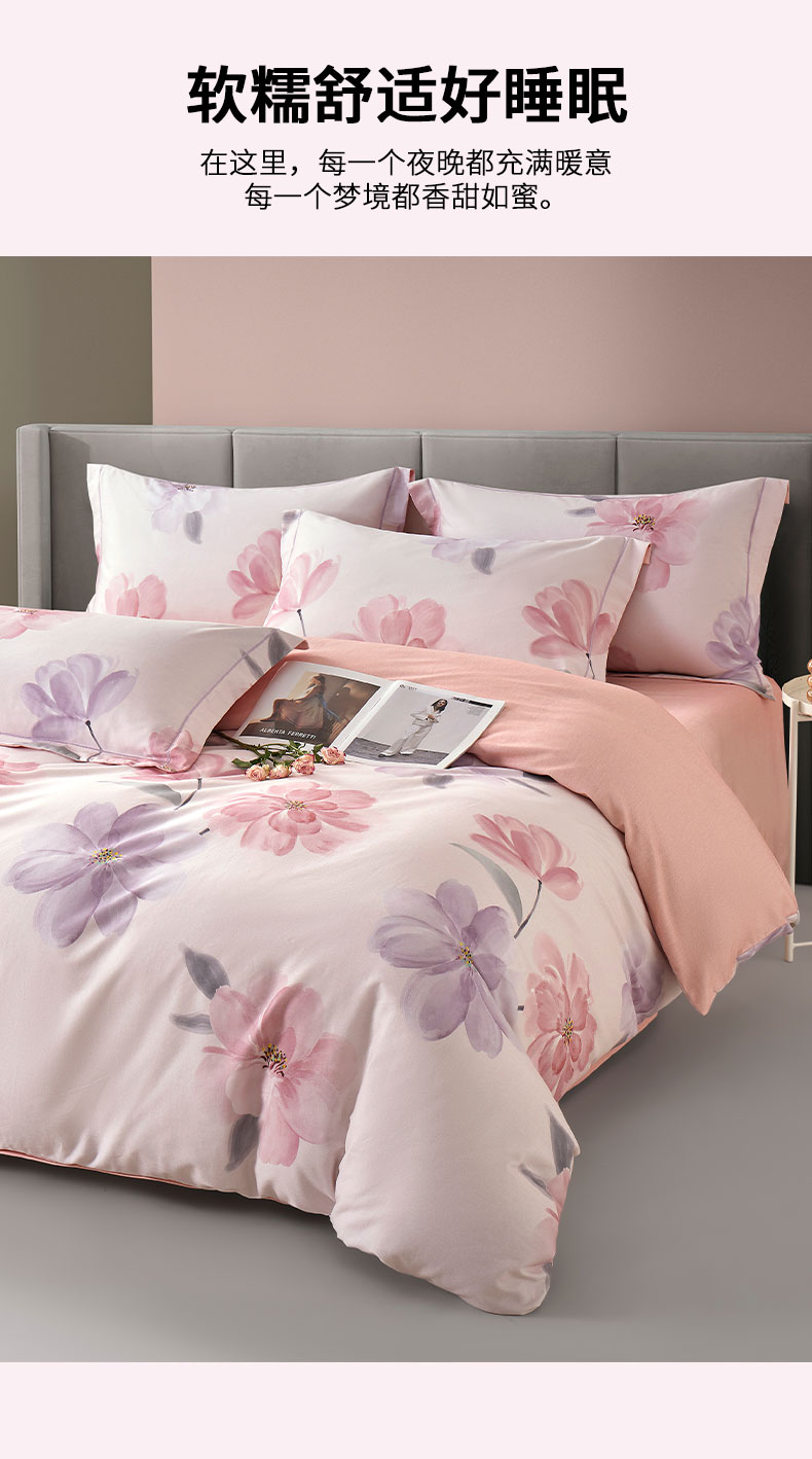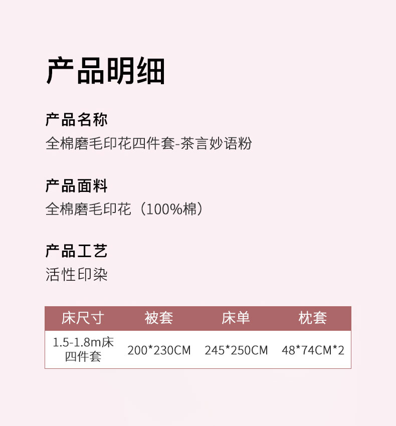 源头唐纳家纺全棉磨毛印花四件套-茶言妙语粉TN-KTX25058
