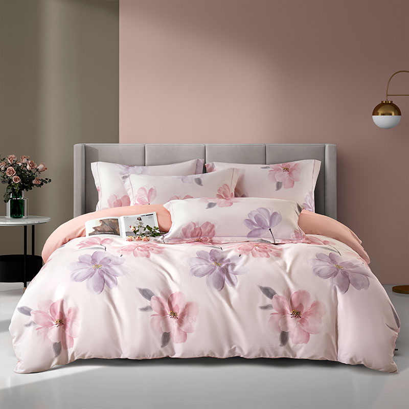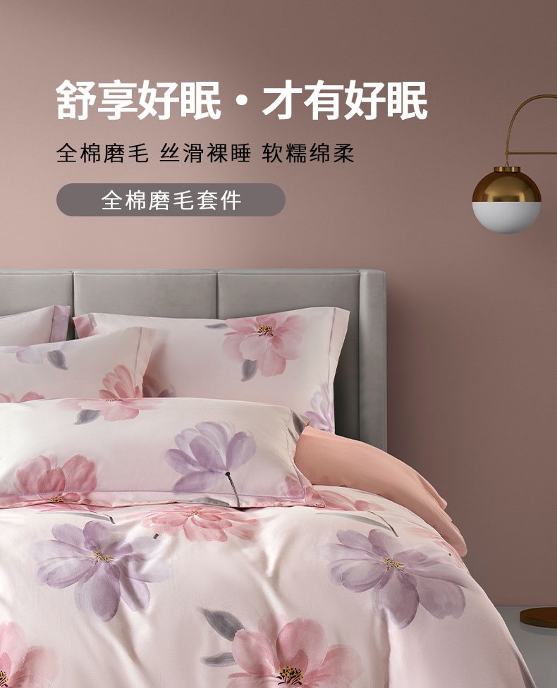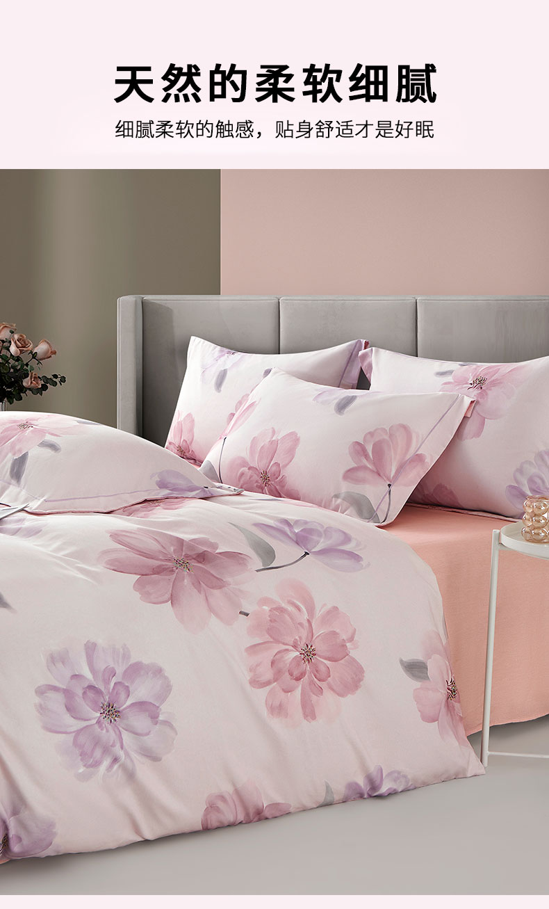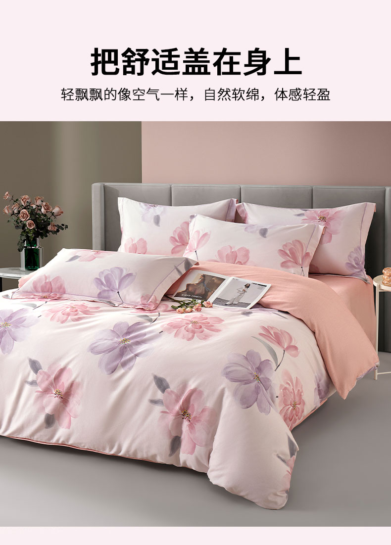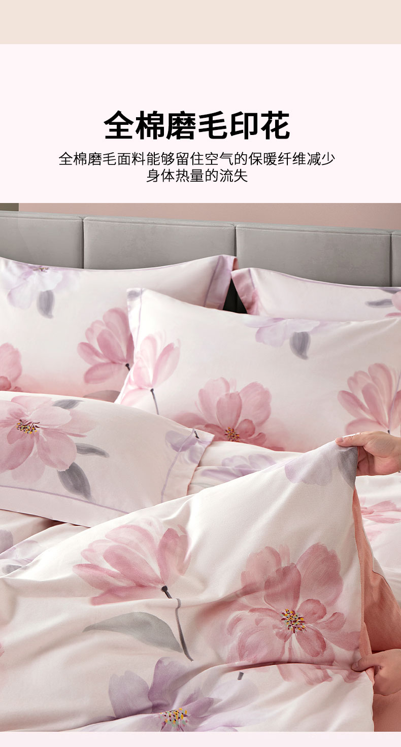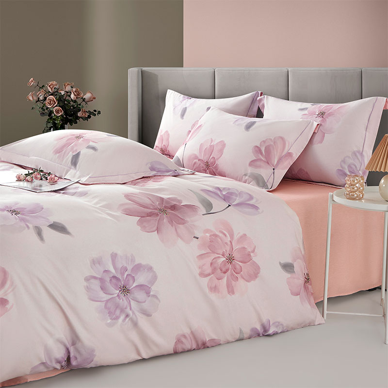 源头唐纳家纺全棉磨毛印花四件套-茶言妙语粉TN-KTX25058