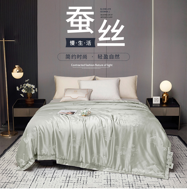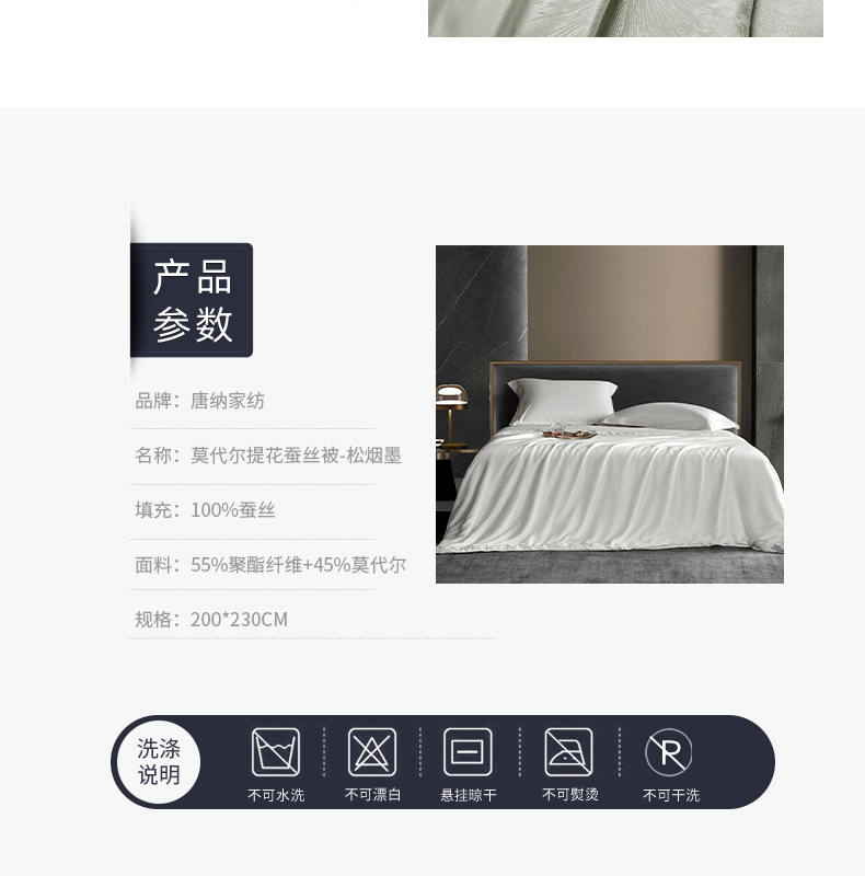 源头唐纳家纺莫代尔提花蚕丝被-松烟墨TN-SQ25021