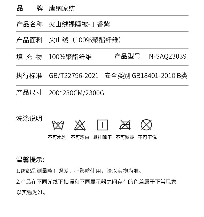 源头唐纳家纺火山绒裸睡被-丁香紫TN-SAQ23039