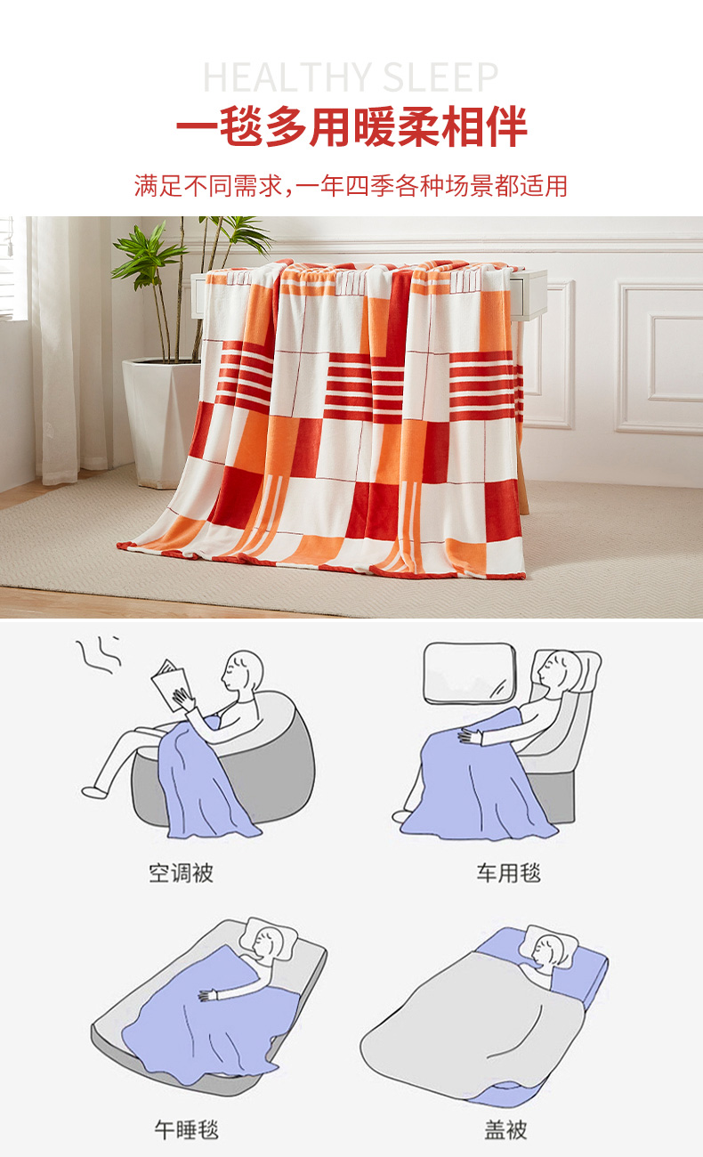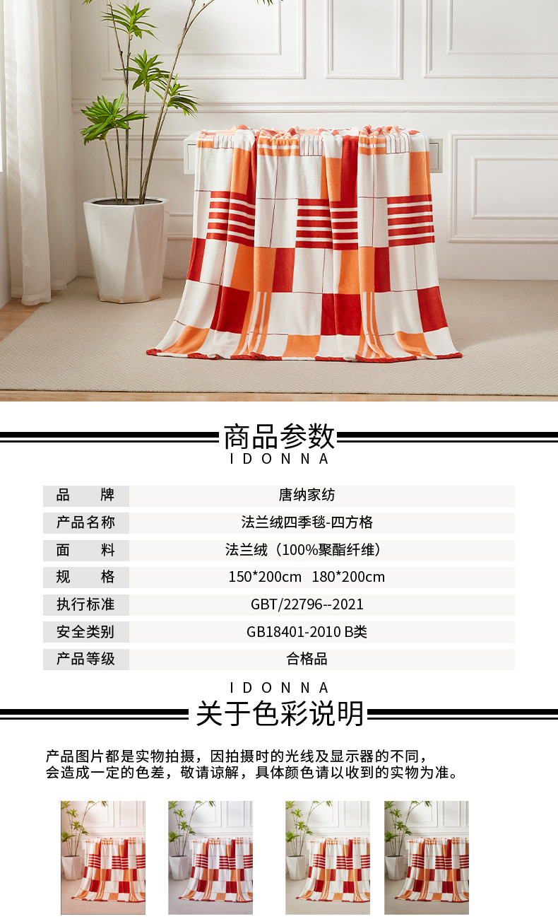 源头唐纳家纺法兰绒四季毯-四方格TN-BK24030