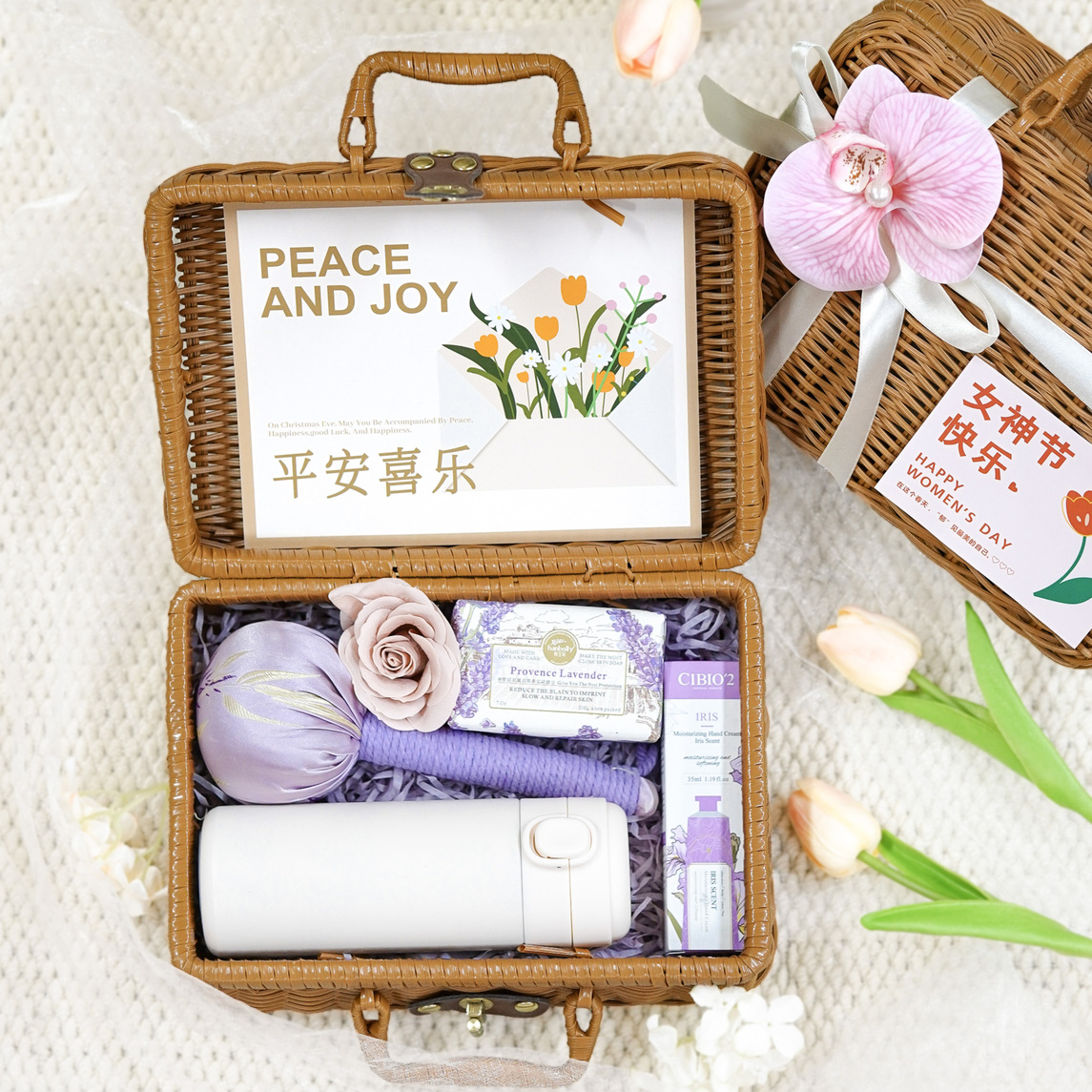 复古藤编收纳手提篮+丝带+贺卡