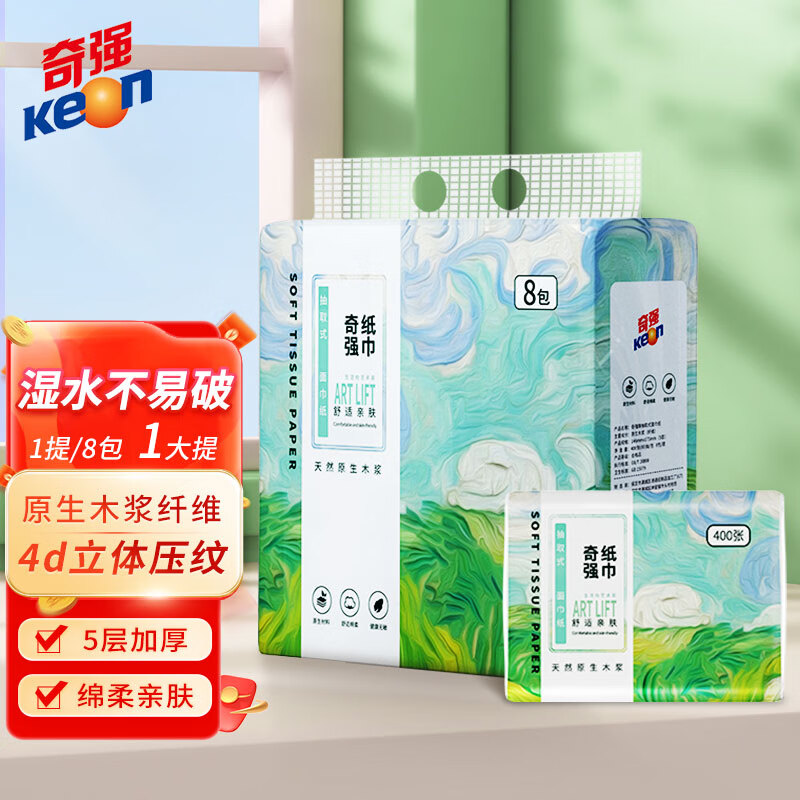 源头奇强 QQCZD224抽取式面巾纸146mmx175mm 400张*8包/1提