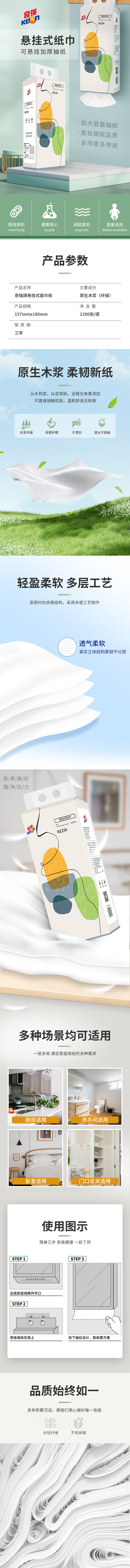 源头奇强 QQZJD187悬挂式面巾纸 1280张/3提/组