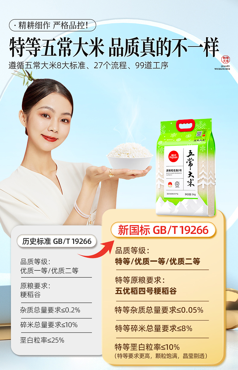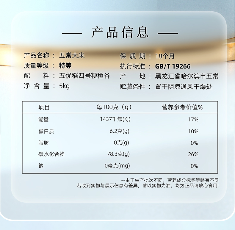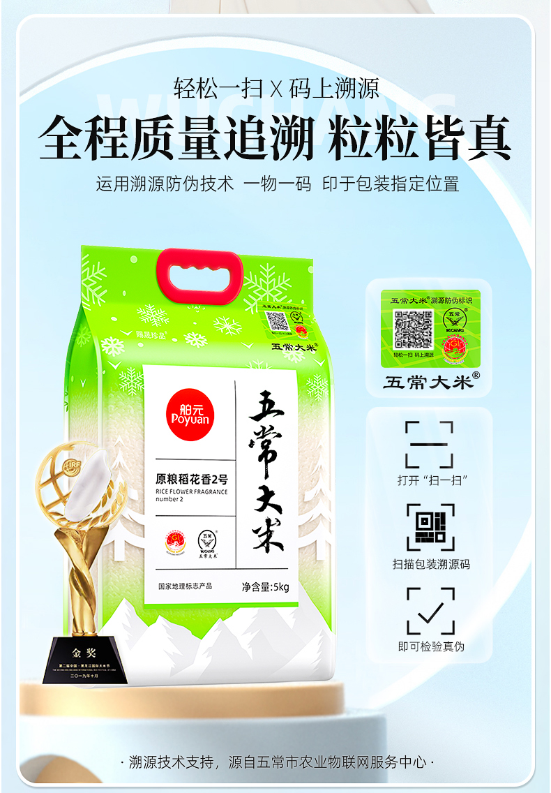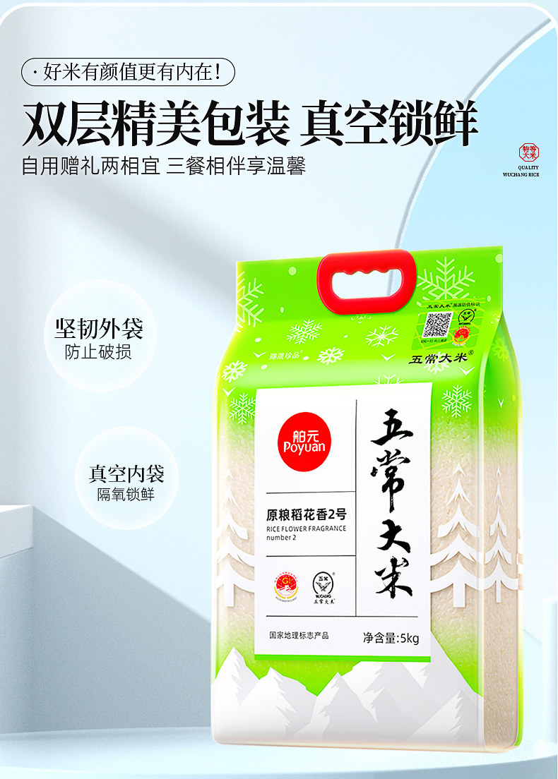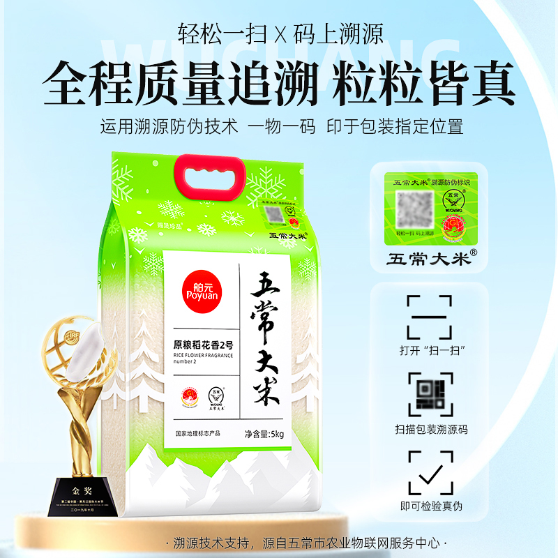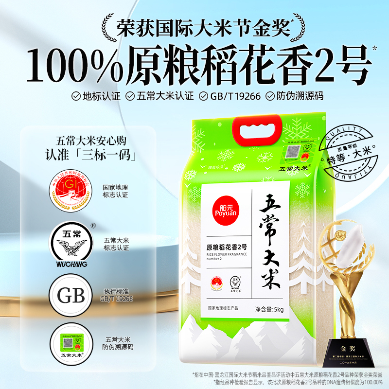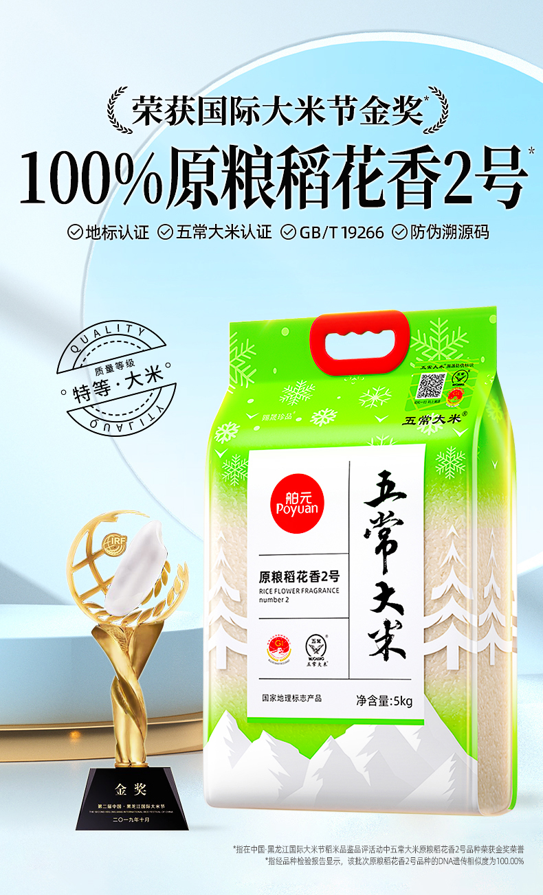 代发舶元五常大米原粮稻花香2号5kg东北大米GB/T19266