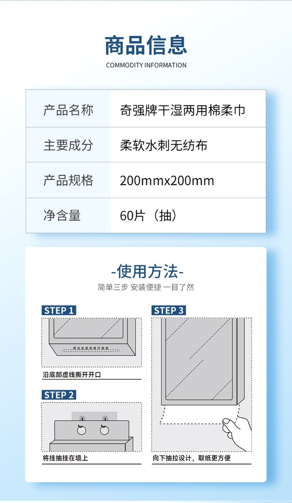 源头奇强 QQRJD262干湿两用棉柔巾 60片/20包/箱