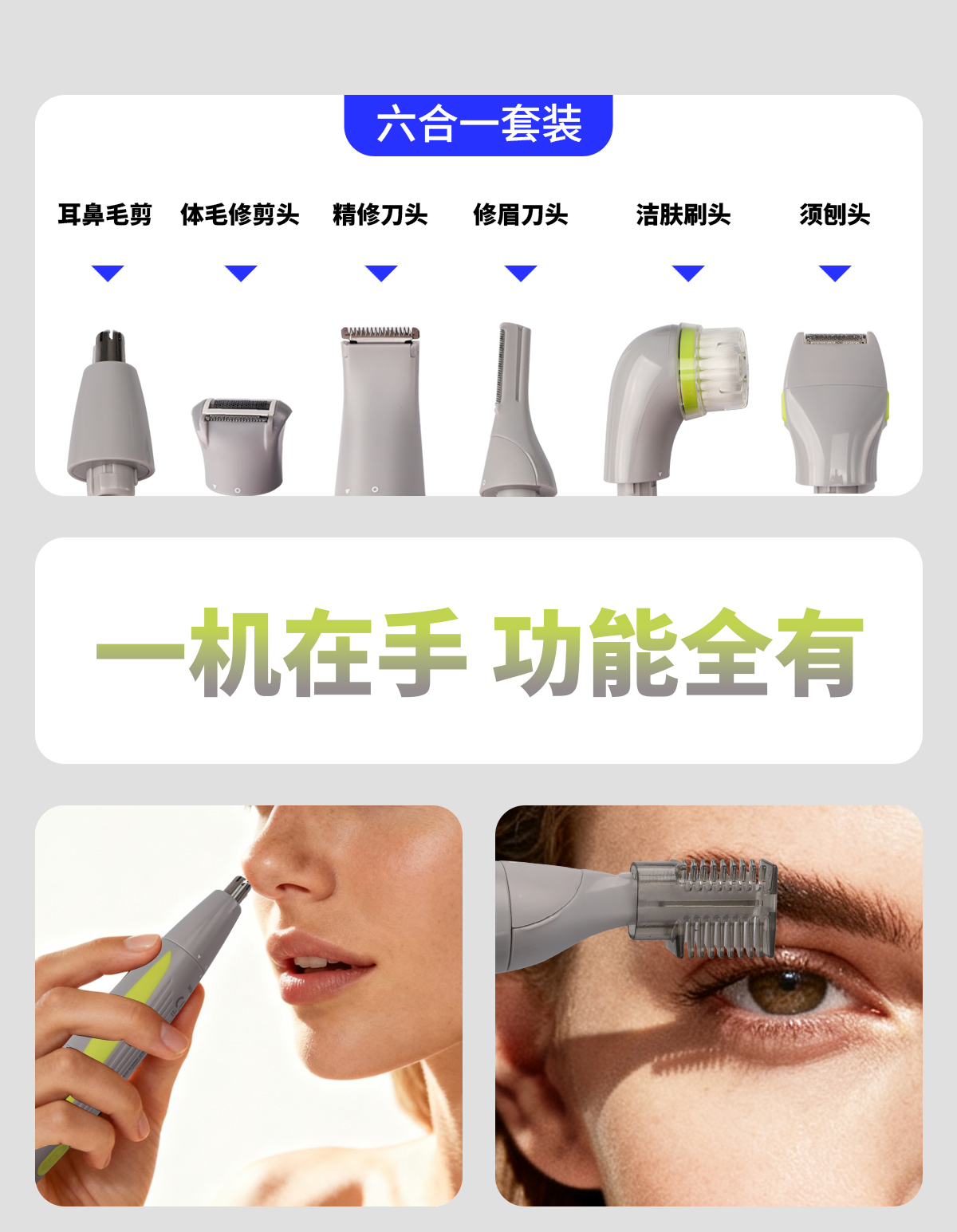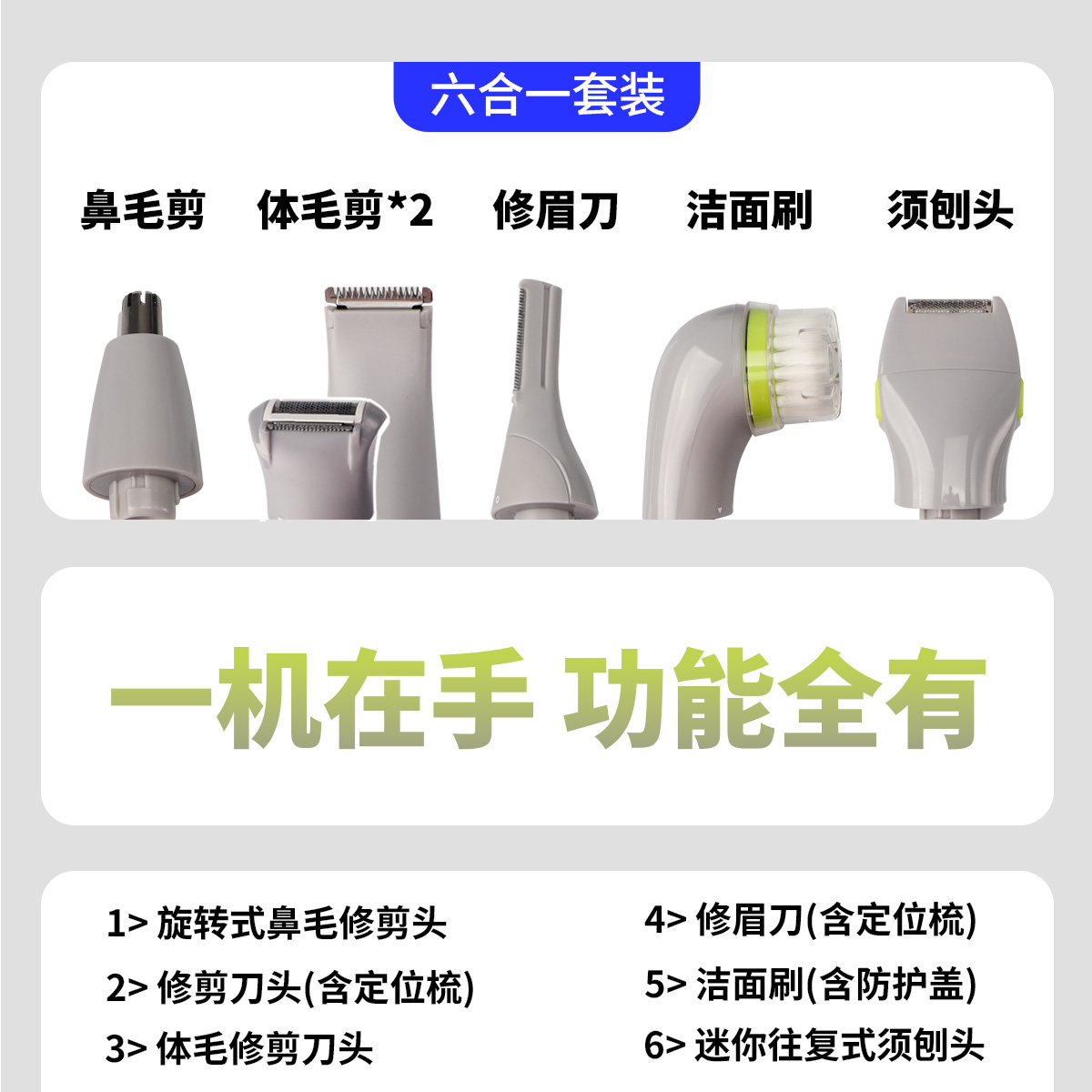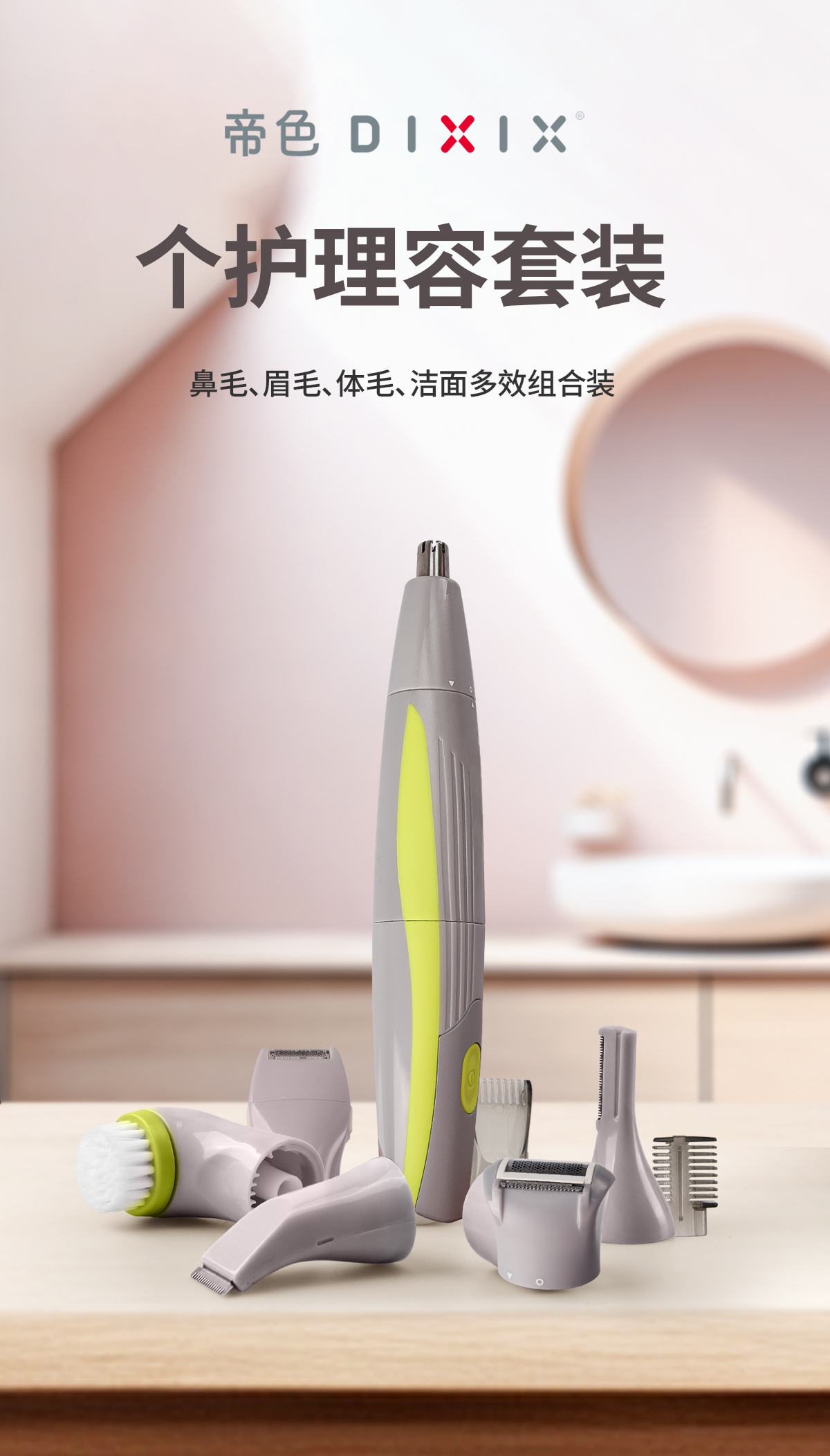 荐代发DIXIX帝色多功能个人理容套装鼻毛修剪器修眉刀刮毛器脱毛仪剃须器PG6300RC 充电式个人理容套装