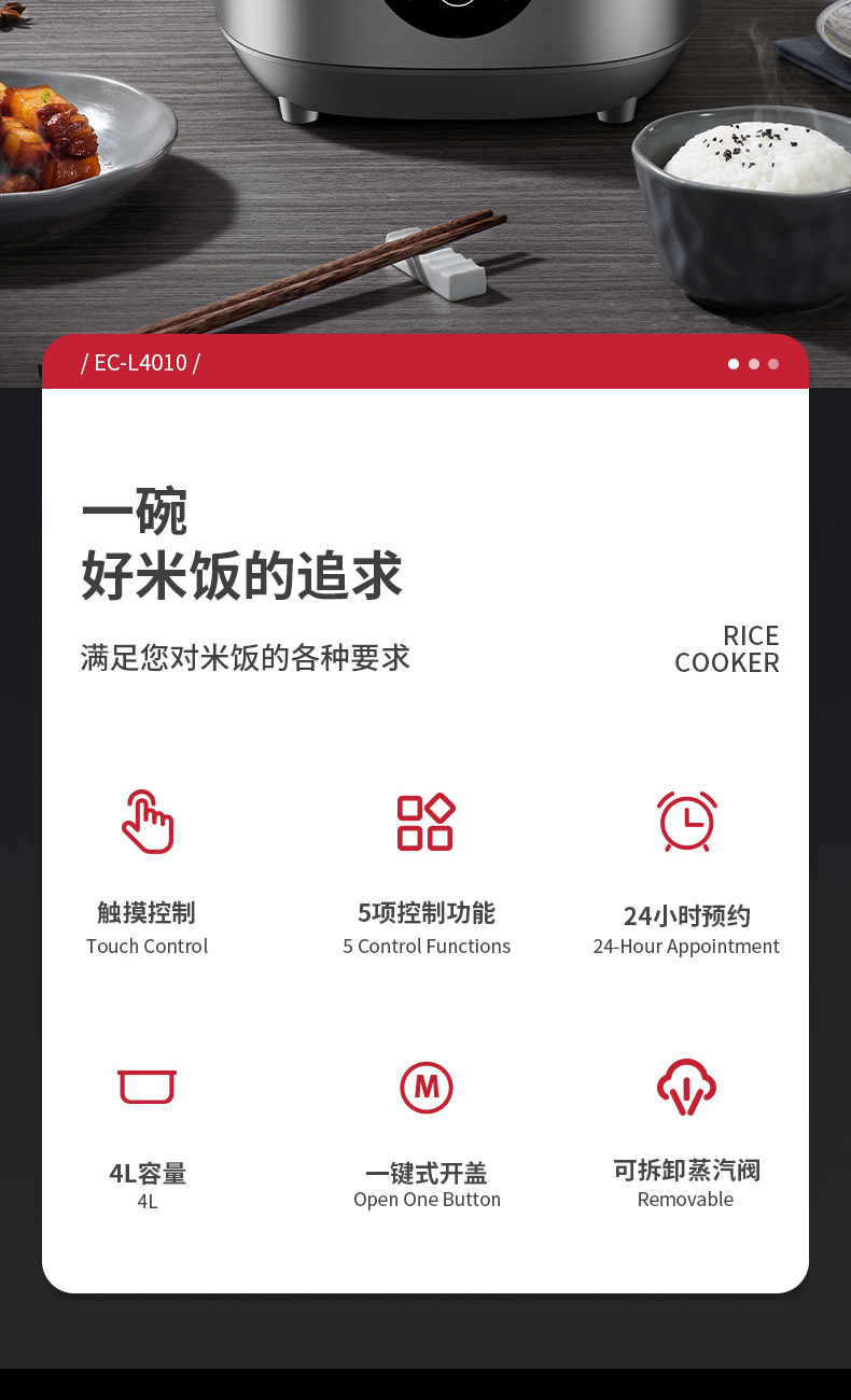 荐代发米技生活 微电脑多功能(薄盖)电饭煲 EC-L4010