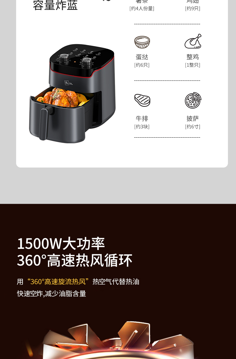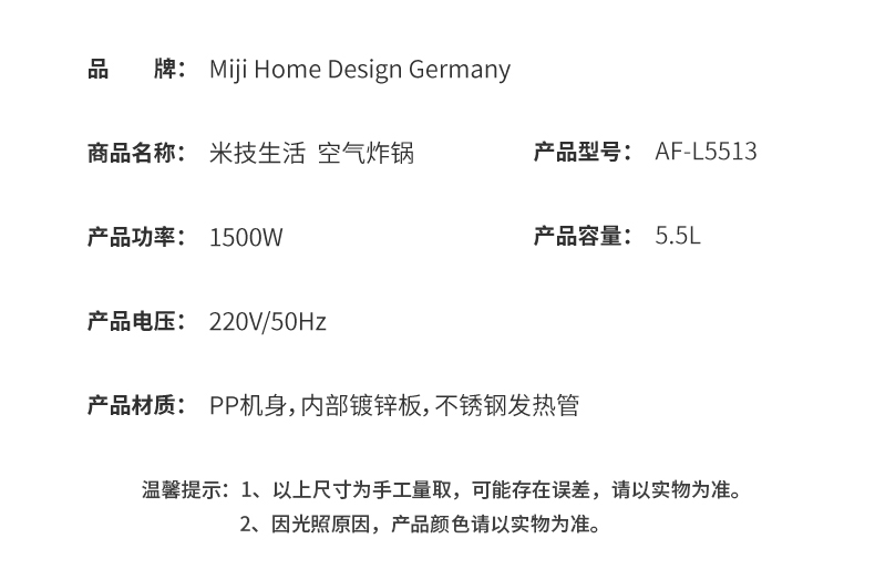 荐代发米技生活 空气炸锅 AF-L5513