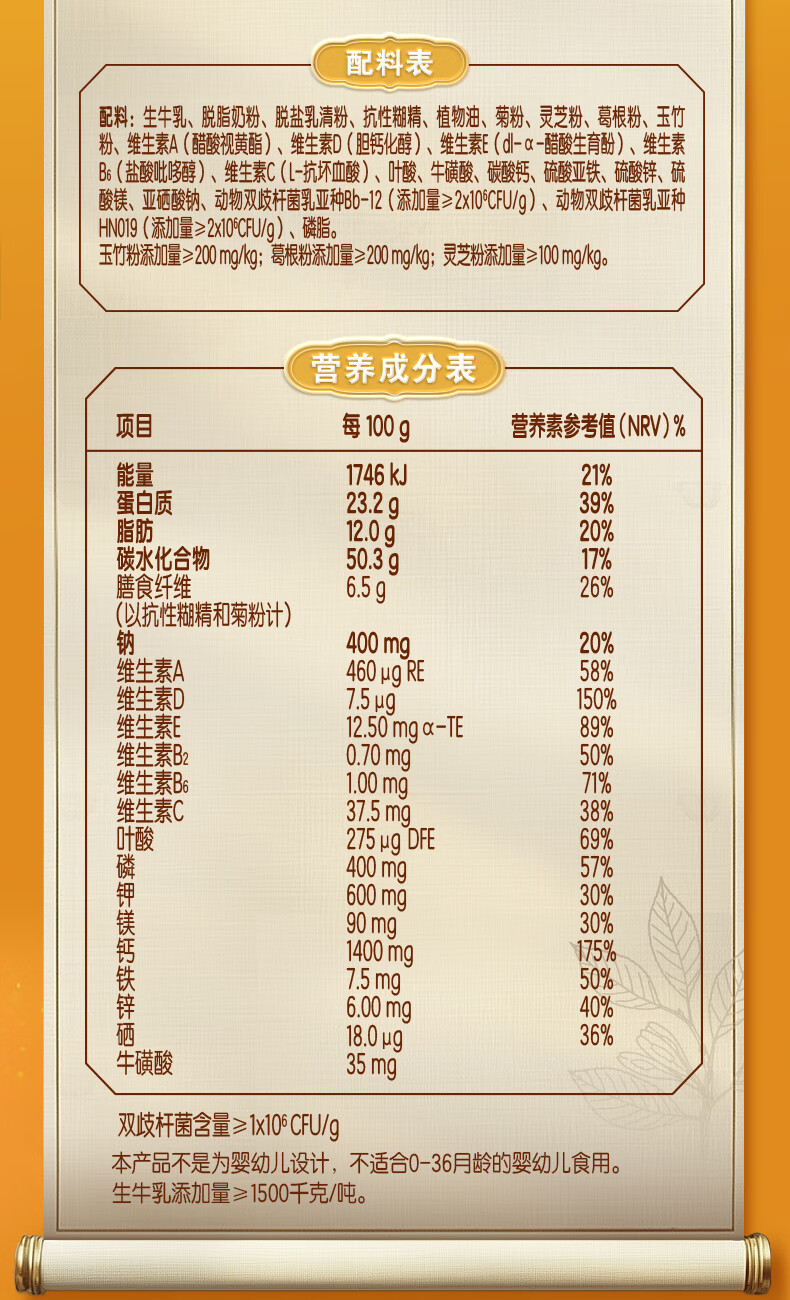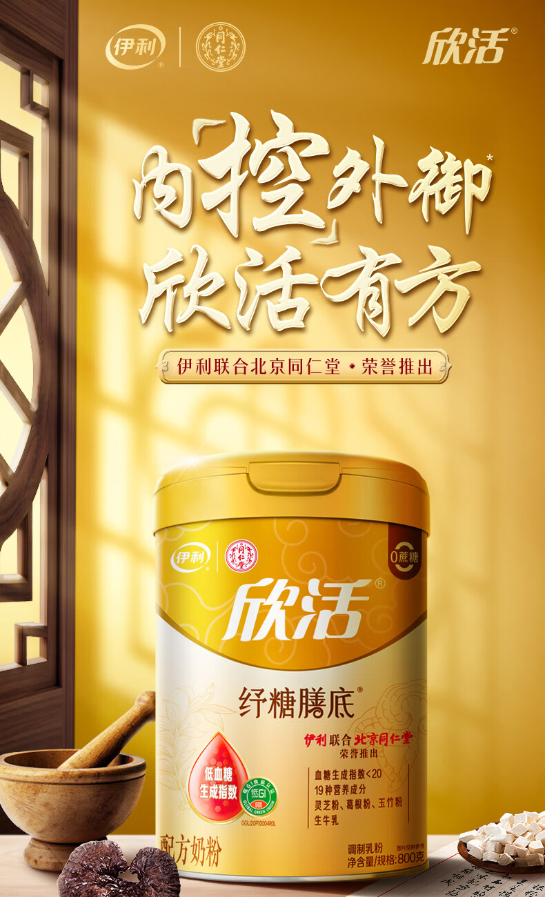 荐代发伊利欣活纾糖膳底配方奶粉(双听礼盒装)(同仁堂联名)1600g