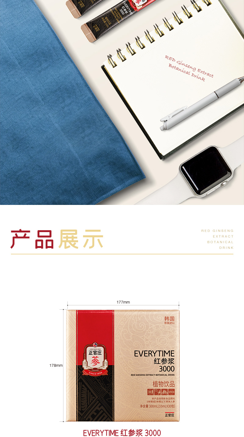代发自营正官庄 EVERYTIME 红参浆3000 植物饮品600ml(韩国原装进口)