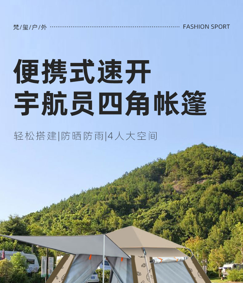 荐代发梵玺 便携式速开宇航员四角帐篷 FX-1003