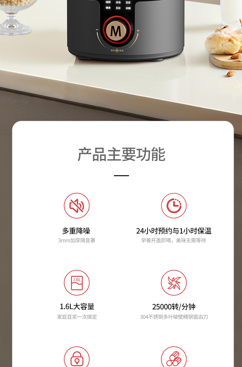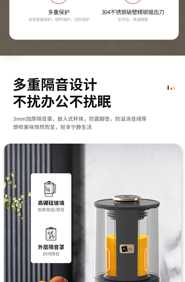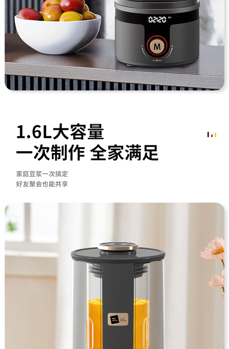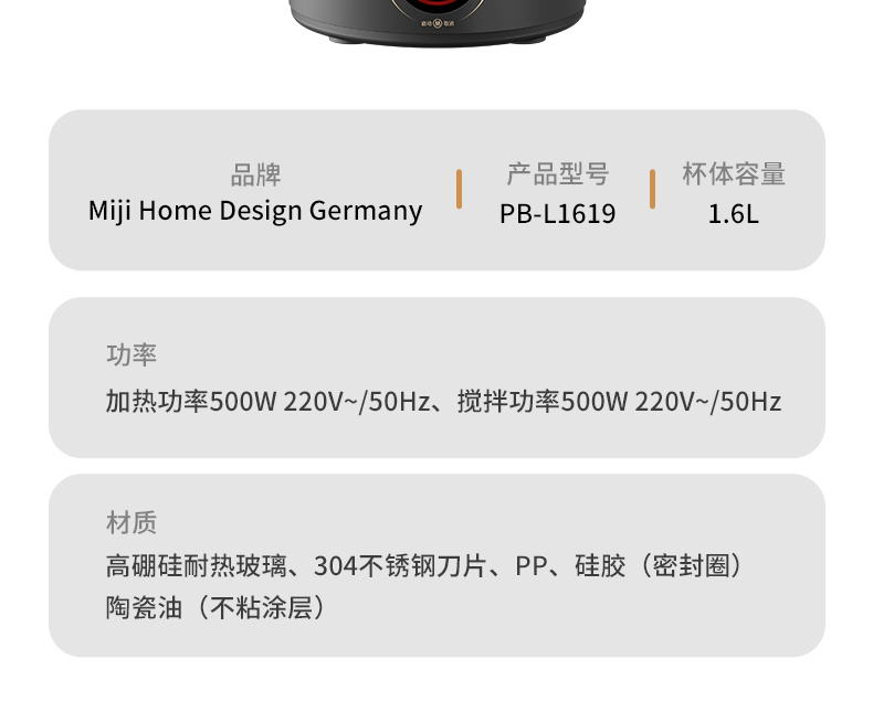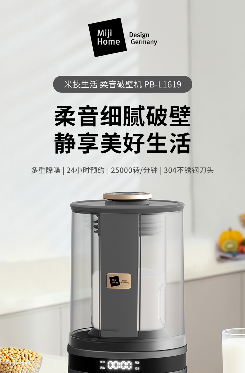 荐代发米技生活 柔音破壁机 PB-L1619