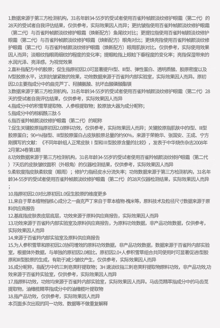荐代发百雀羚帧颜淡纹修护眼霜(焕新配方)15G
