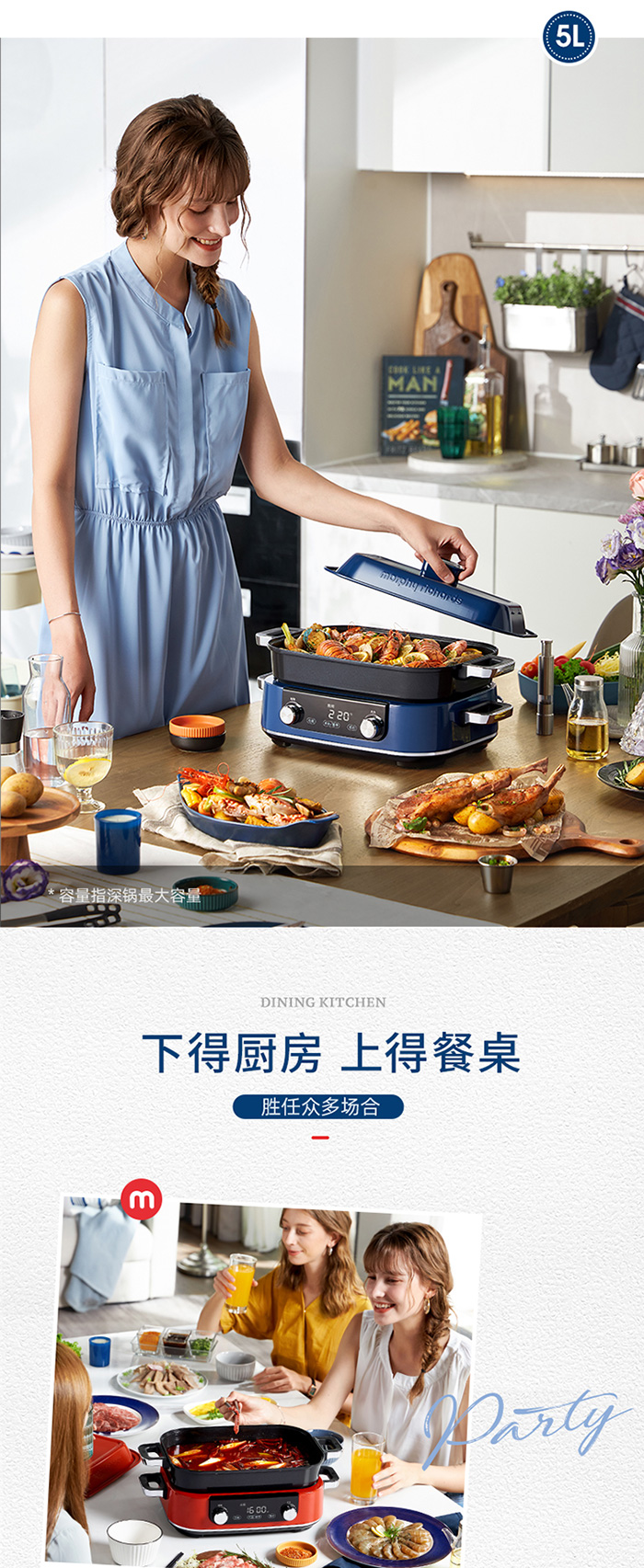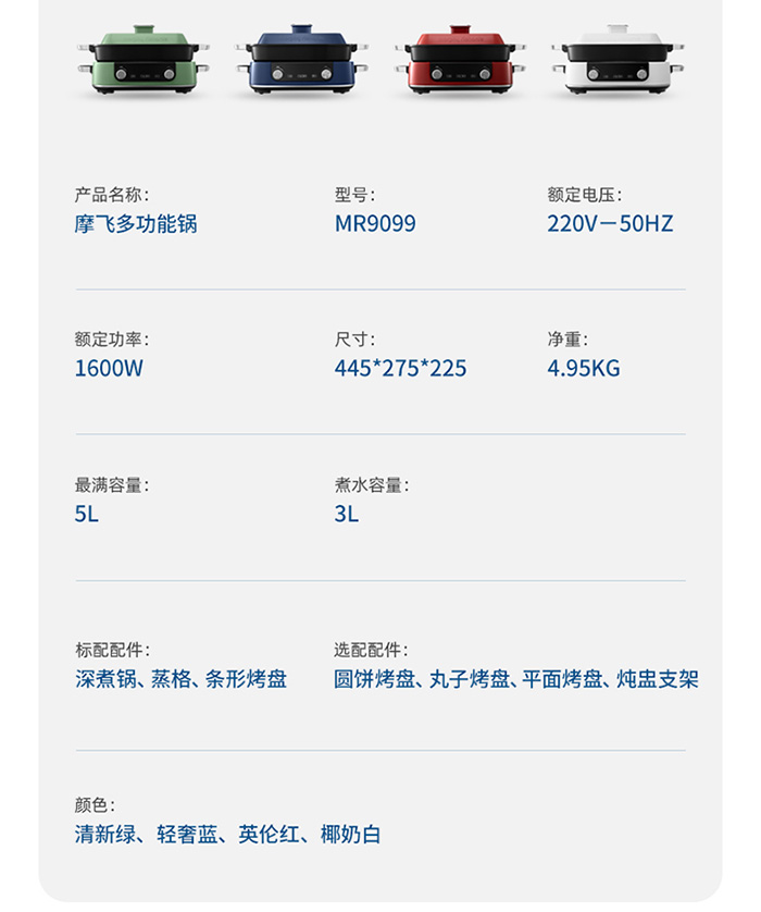 荐代发摩飞多功能锅 MR9099 蓝色