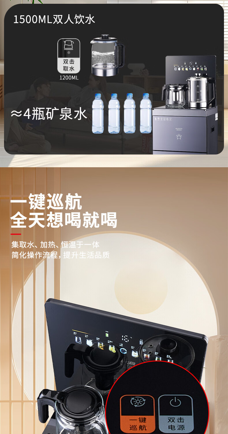 源头澳柯玛(AUCMA)超薄屏底部上水茶吧机YR8A-Y168(Y)plus上下双控一键巡航饮水机 制热型