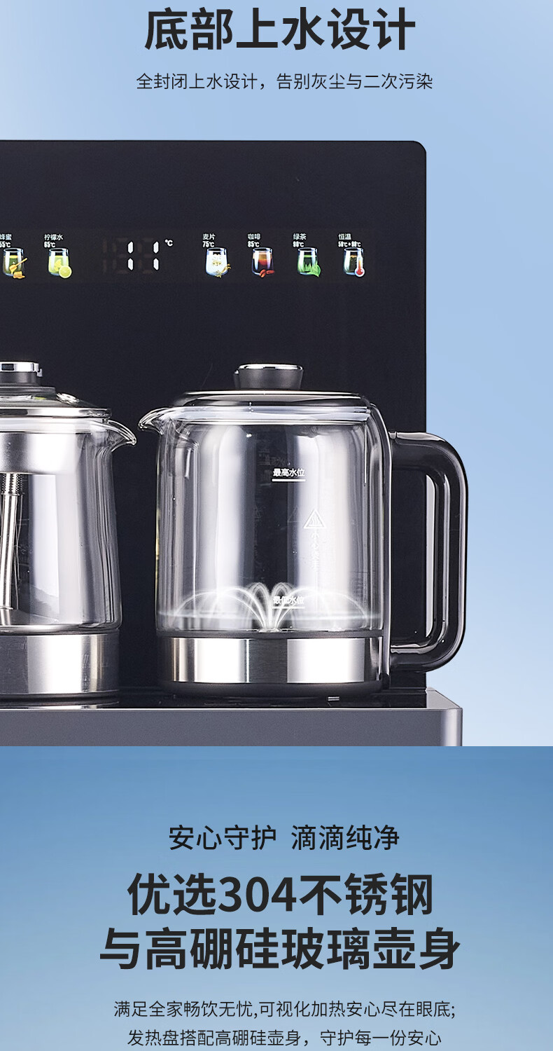 源头澳柯玛(AUCMA)YR8A-Y201(YS)双底部上水茶吧机煮茶养生家用饮水机一键启动8档调节304水壶防溢水可加热保温恒温 制热型