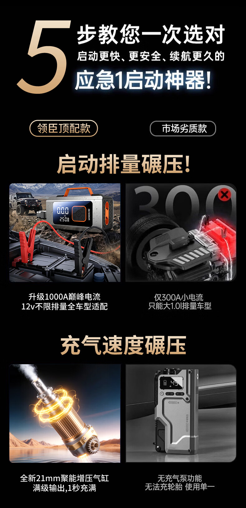 源头领臣 汽车应急启动+充气+鼓风+抽气一体机 LC-DY50