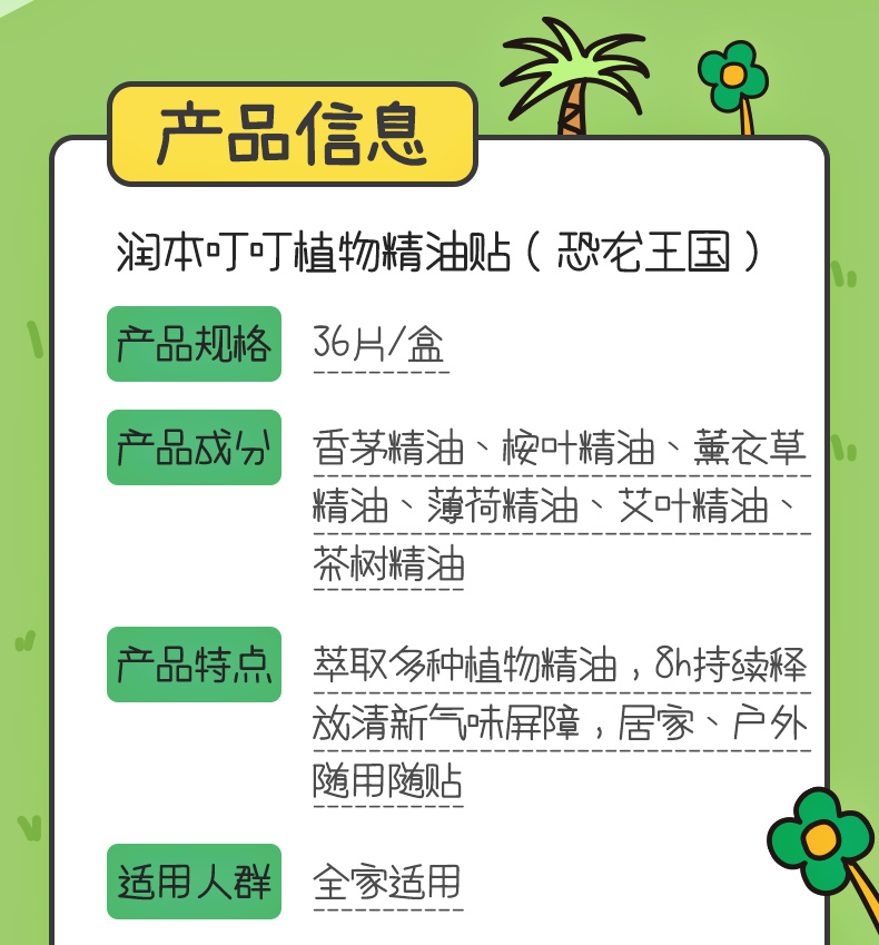 代发润本植物精油贴36片×3盒 恐龙款