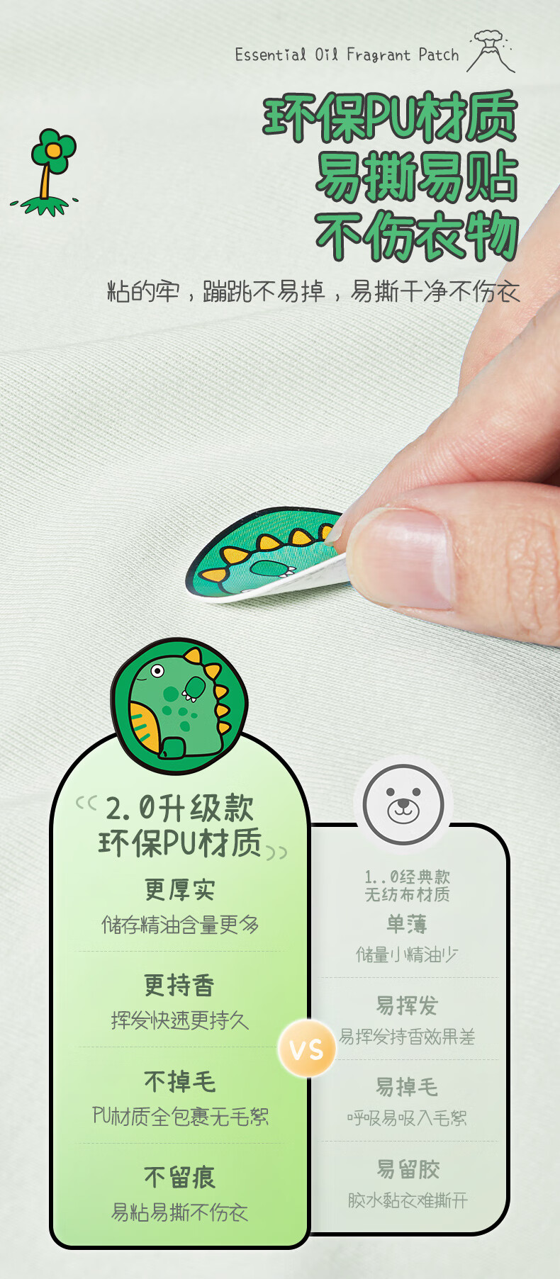 荐代发润本植物精油贴防护贴60片×2袋 恐龙款