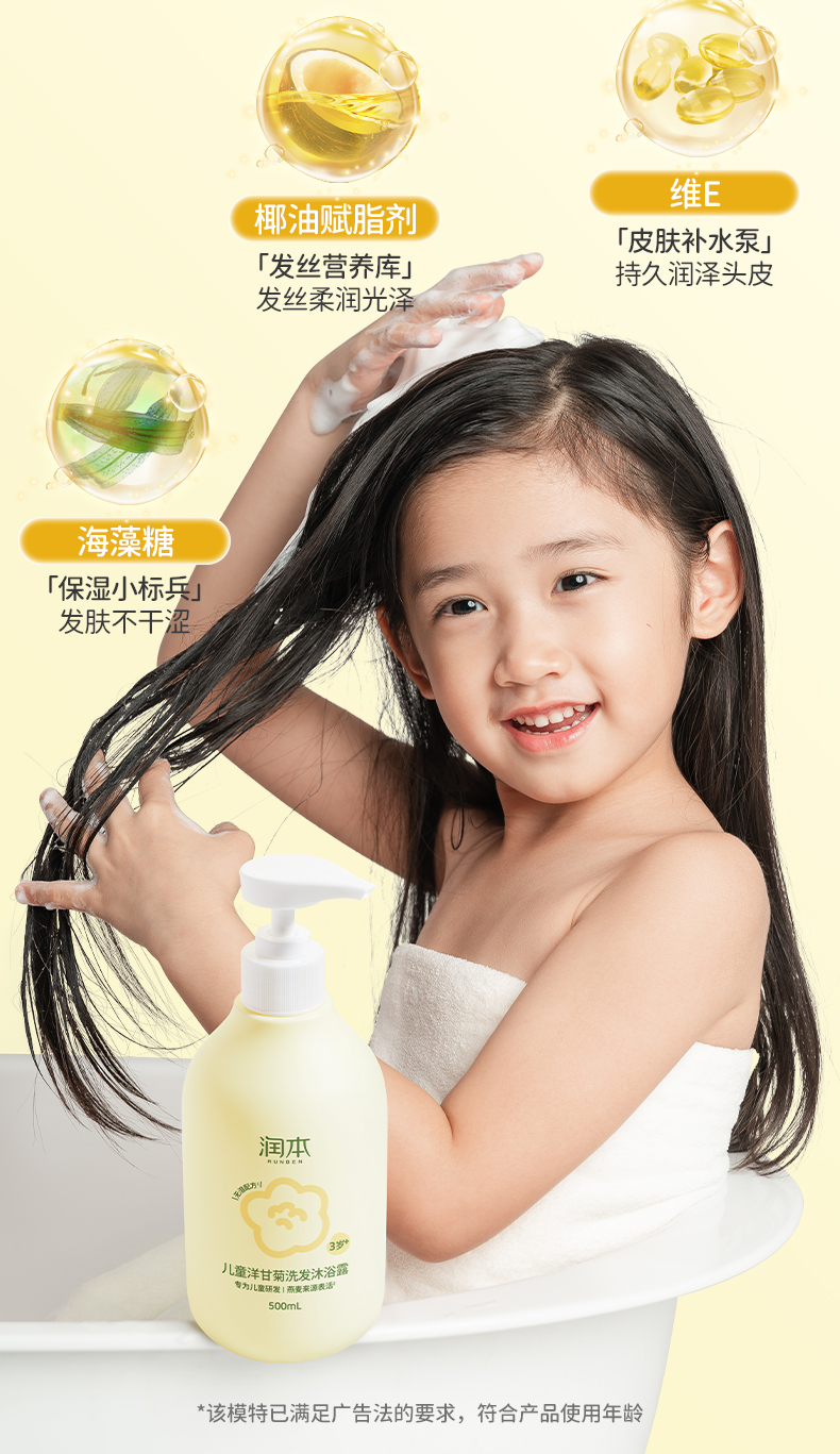荐代发润本儿童洋甘菊洗发沐浴露500ml