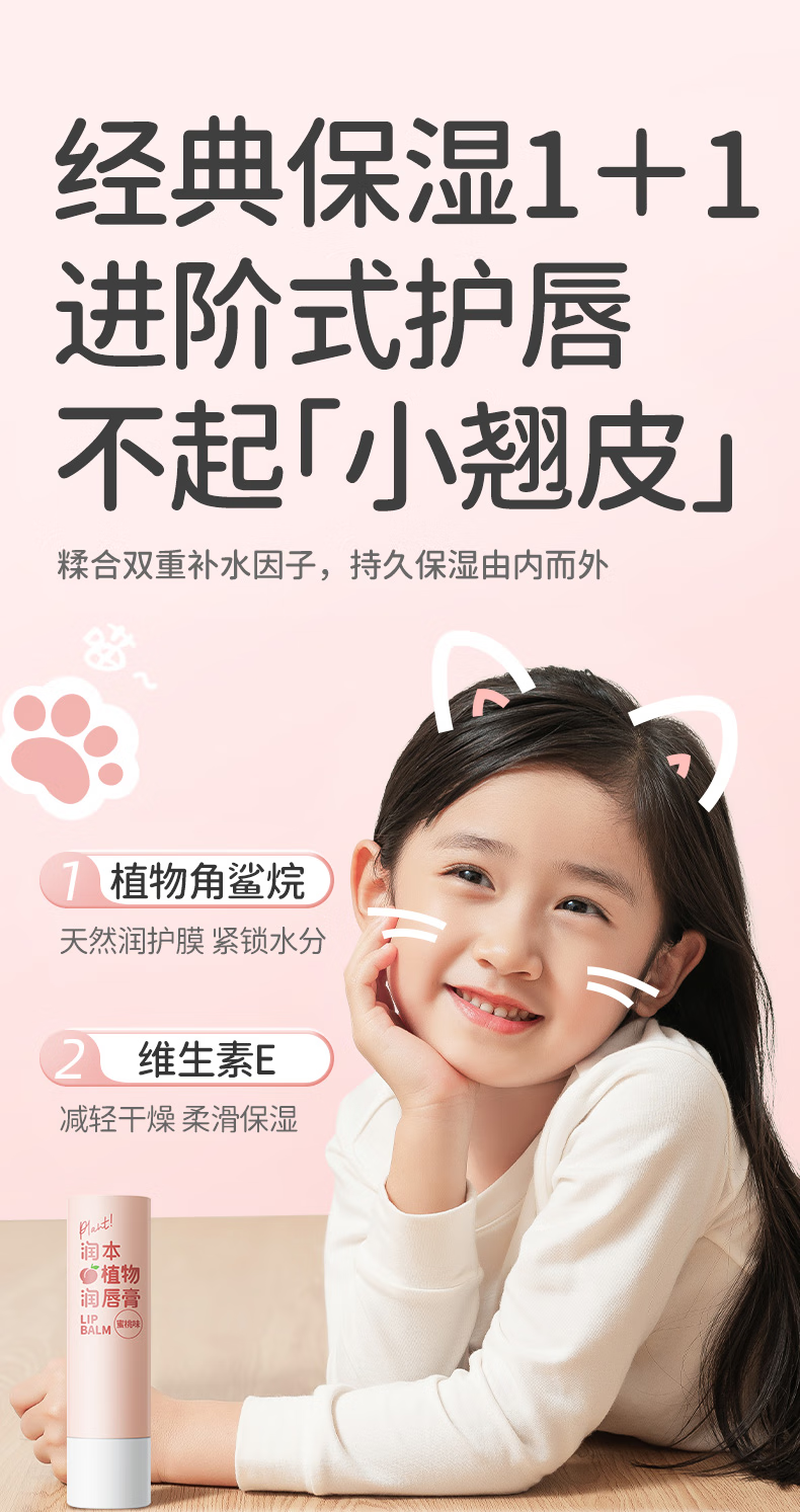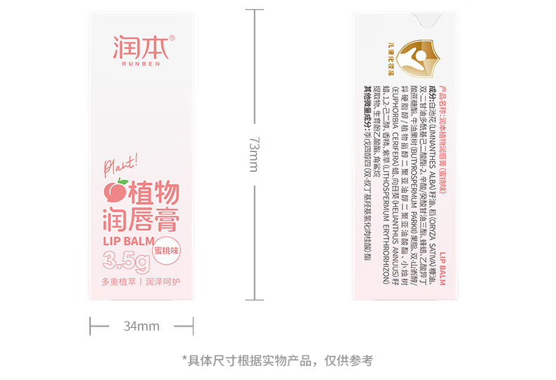 荐代发润本植物润唇膏(蜜桃味)3.5g*3